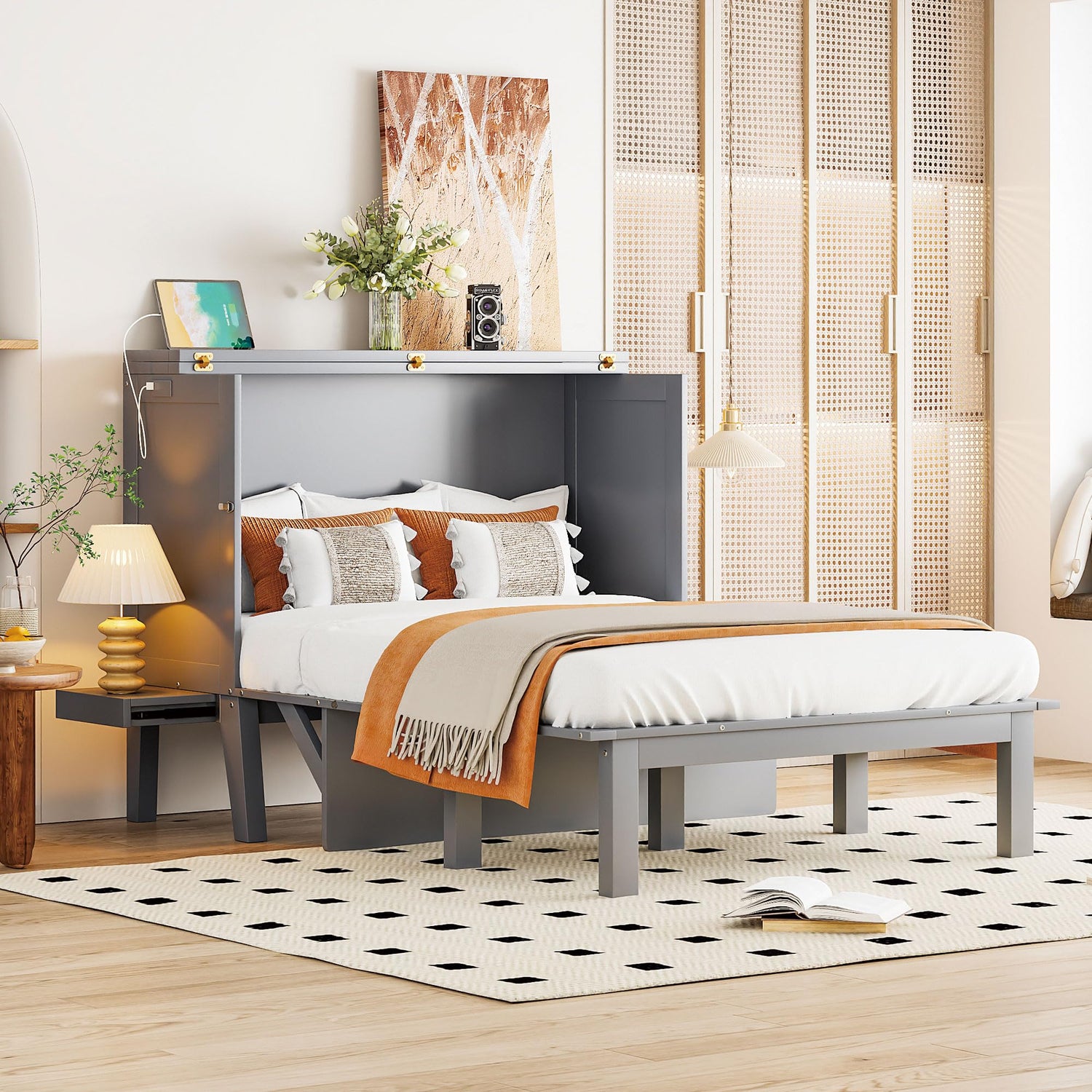 Merax Full Size Murphy Bed with USB Port and Removable Shelves on Each Side, Grey