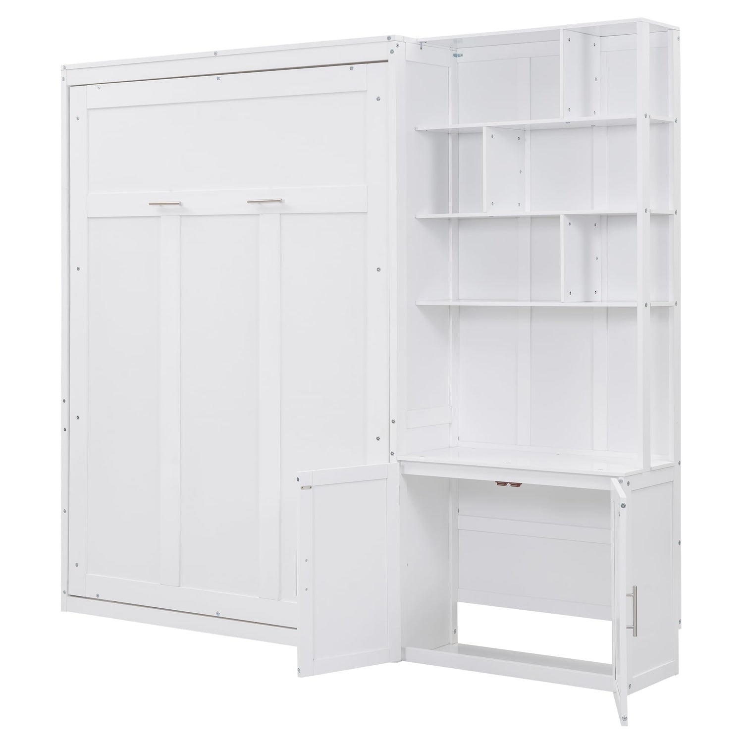 Merax Full Size Murphy Bed, Wood Wall Cabinet Bed with Multiple Storage Shelves and a Cabinet, White