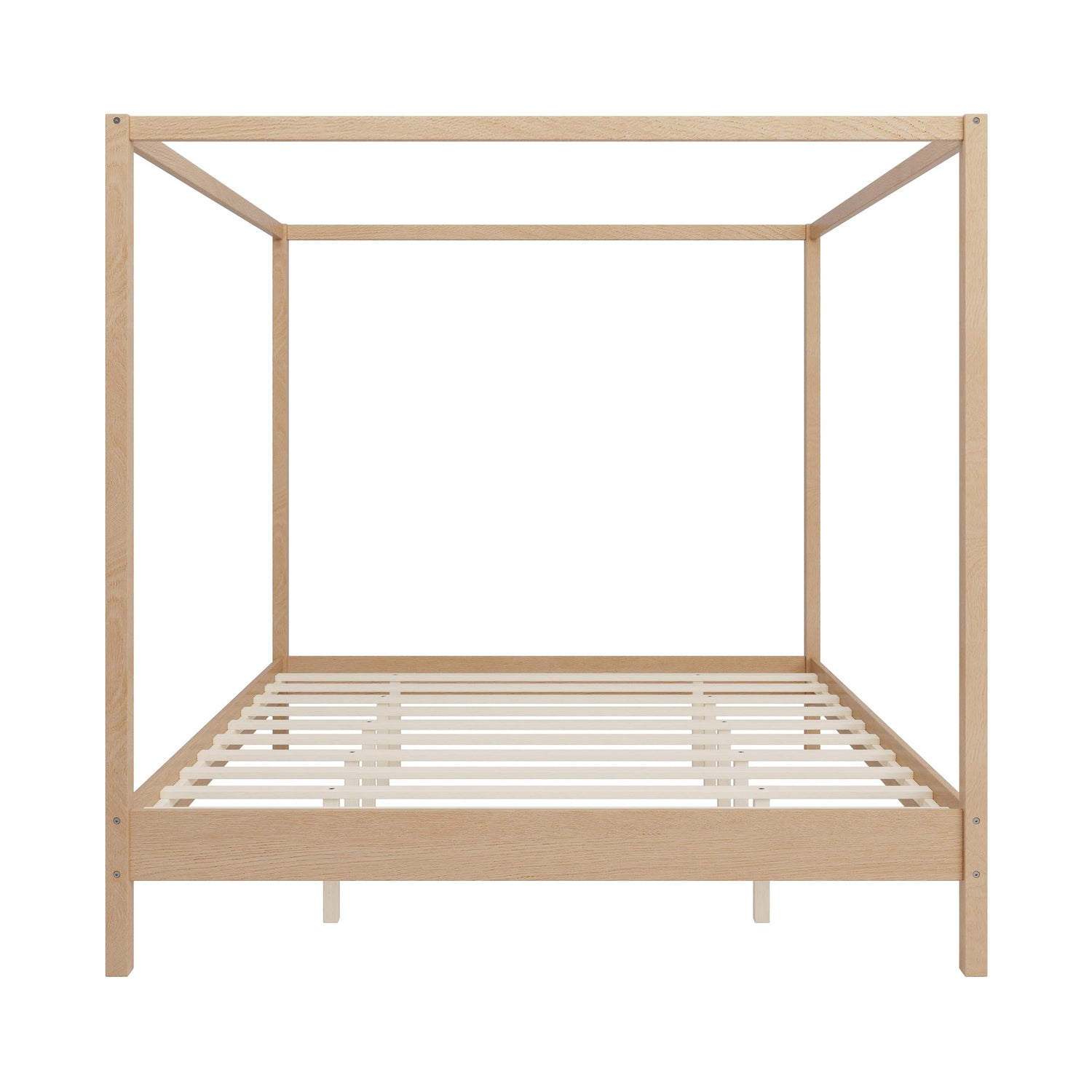 Merax King Size Canopy Bed with Four Posters, Wooden Platform Bed Frame & 8.3" Storage Space Under Bed, Solid Wood Slats Support, No Box Spring Needed, Easy Assembly, Natural