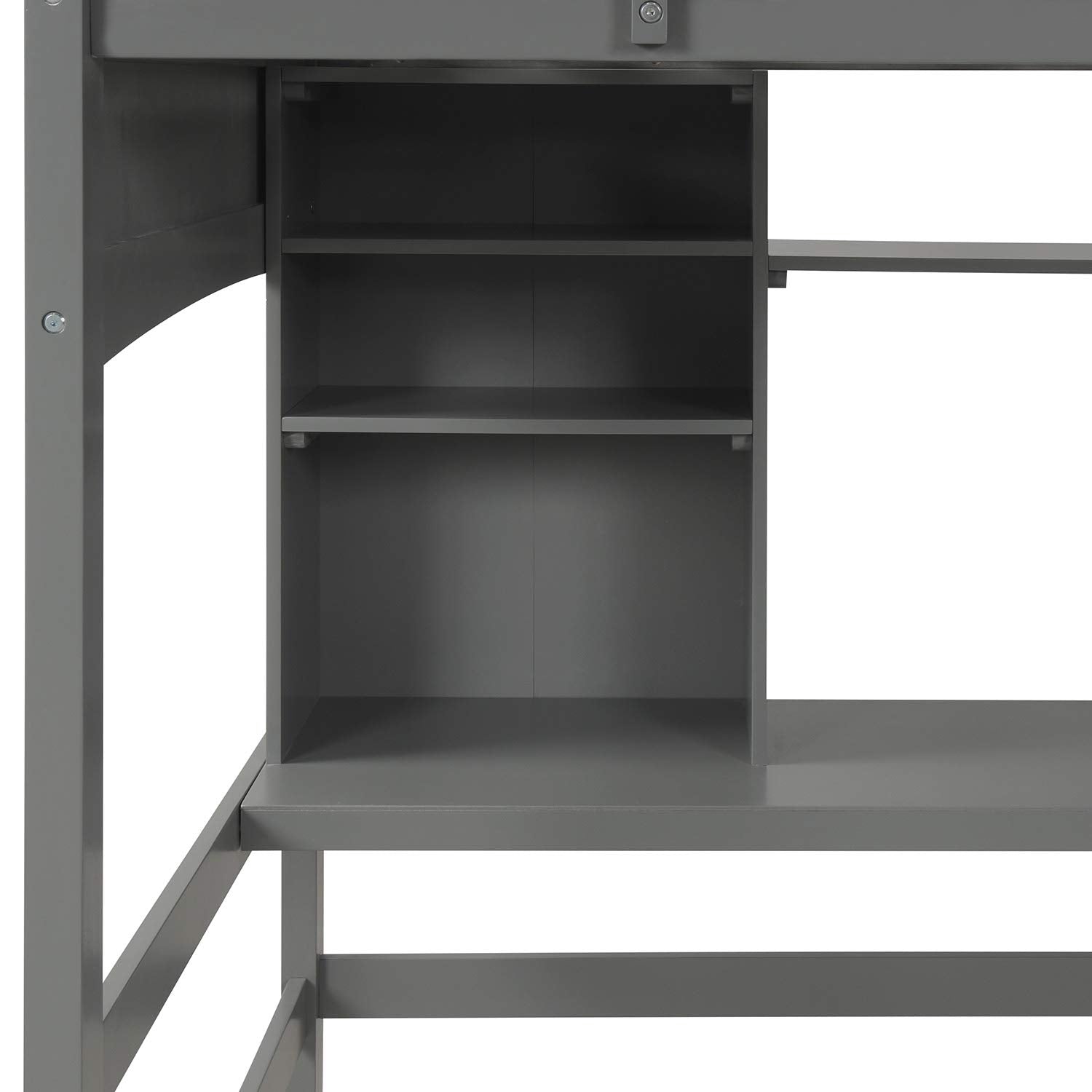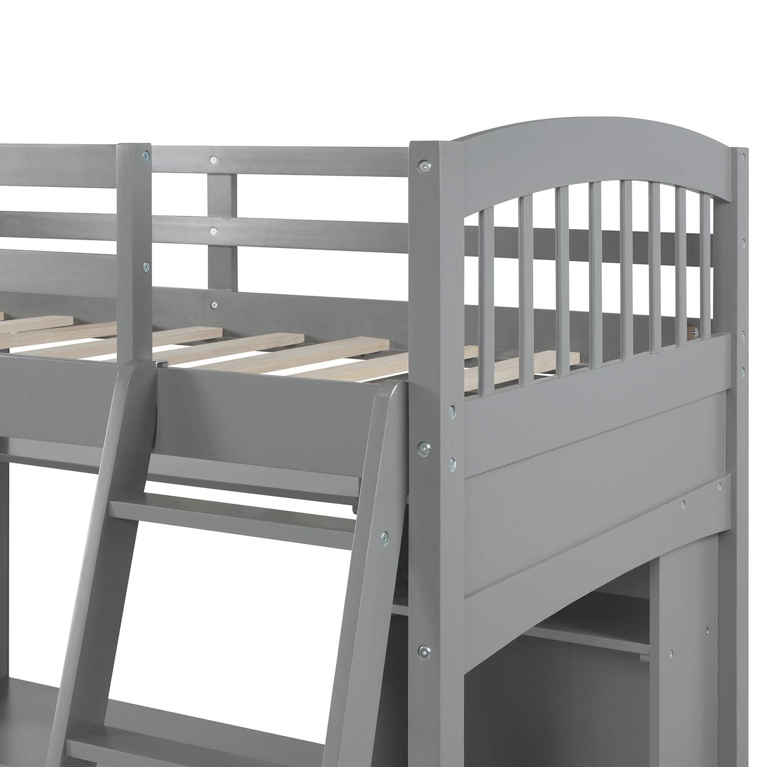 Merax Twin Size Grey Loft Bed with Desk and Shelves - Solid Pine Wood Frame