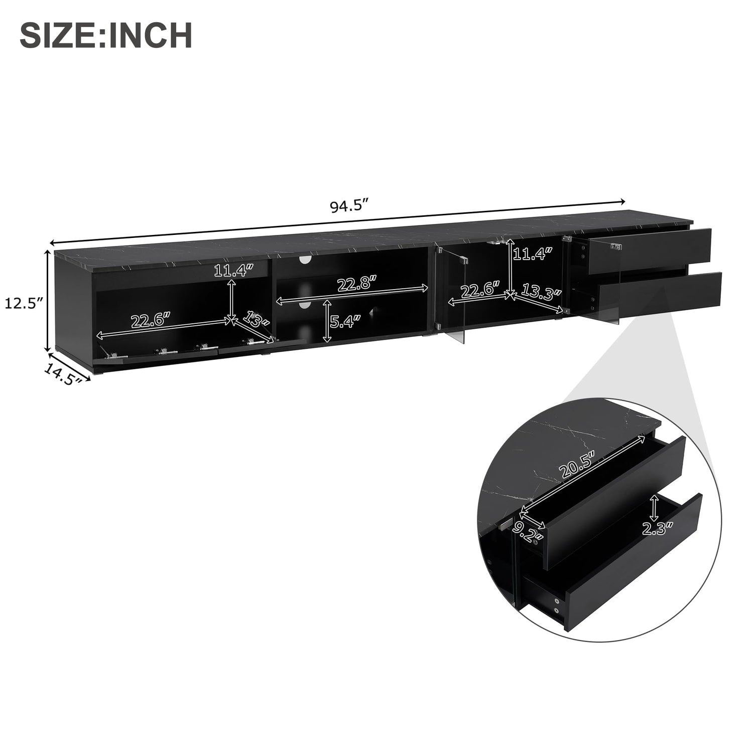 Merax Modern APP Controlled LED TV Stand for TVs Up to 105'', Faux Marble Tabletop Media Console with Tempered Glass Doors, 2 Drawers & Cabinets, High Gloss Entertainment Center for Living Room, Black