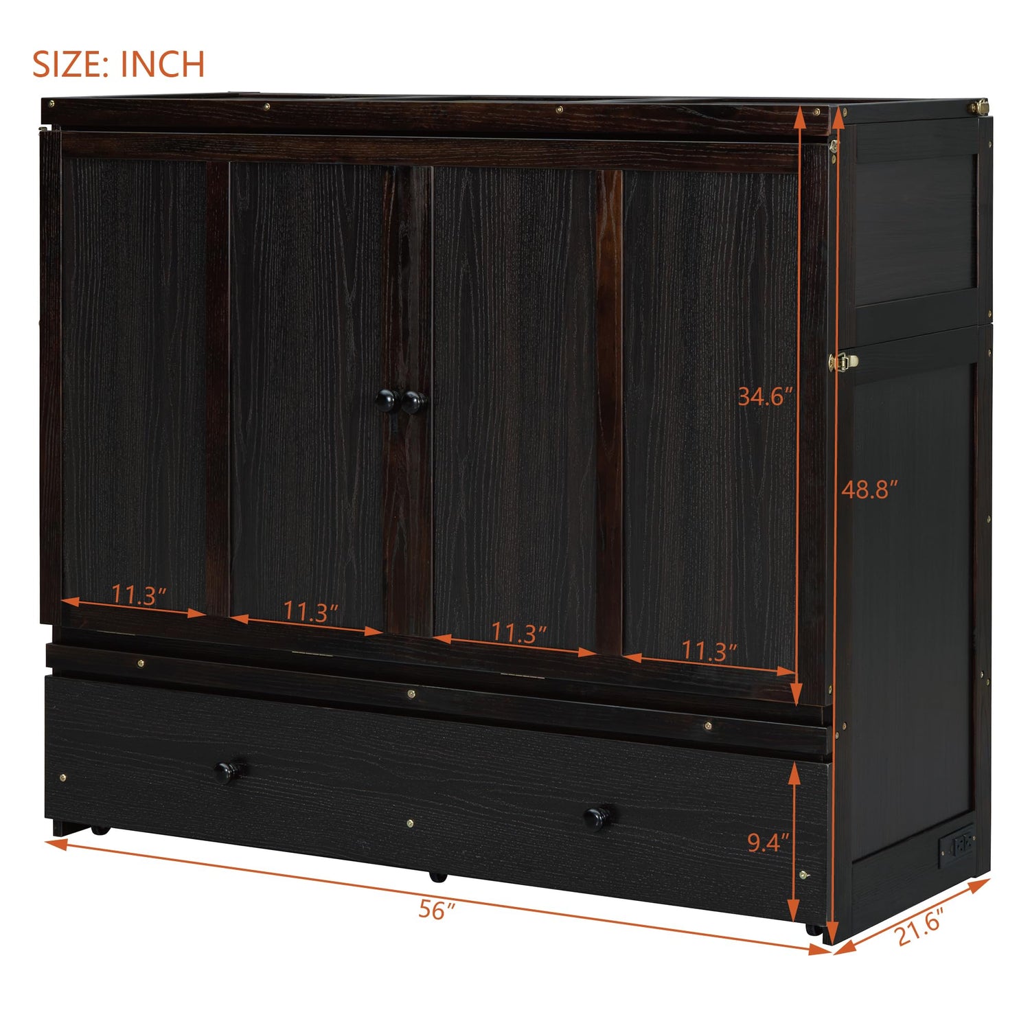 Merax Murphy Bed Cabinet Full Size with Storage Drawers, Chest Cube Bed for Guest Room, Built-in Sockets & USB Ports, for Home Office or Small Bedroom, Espresso