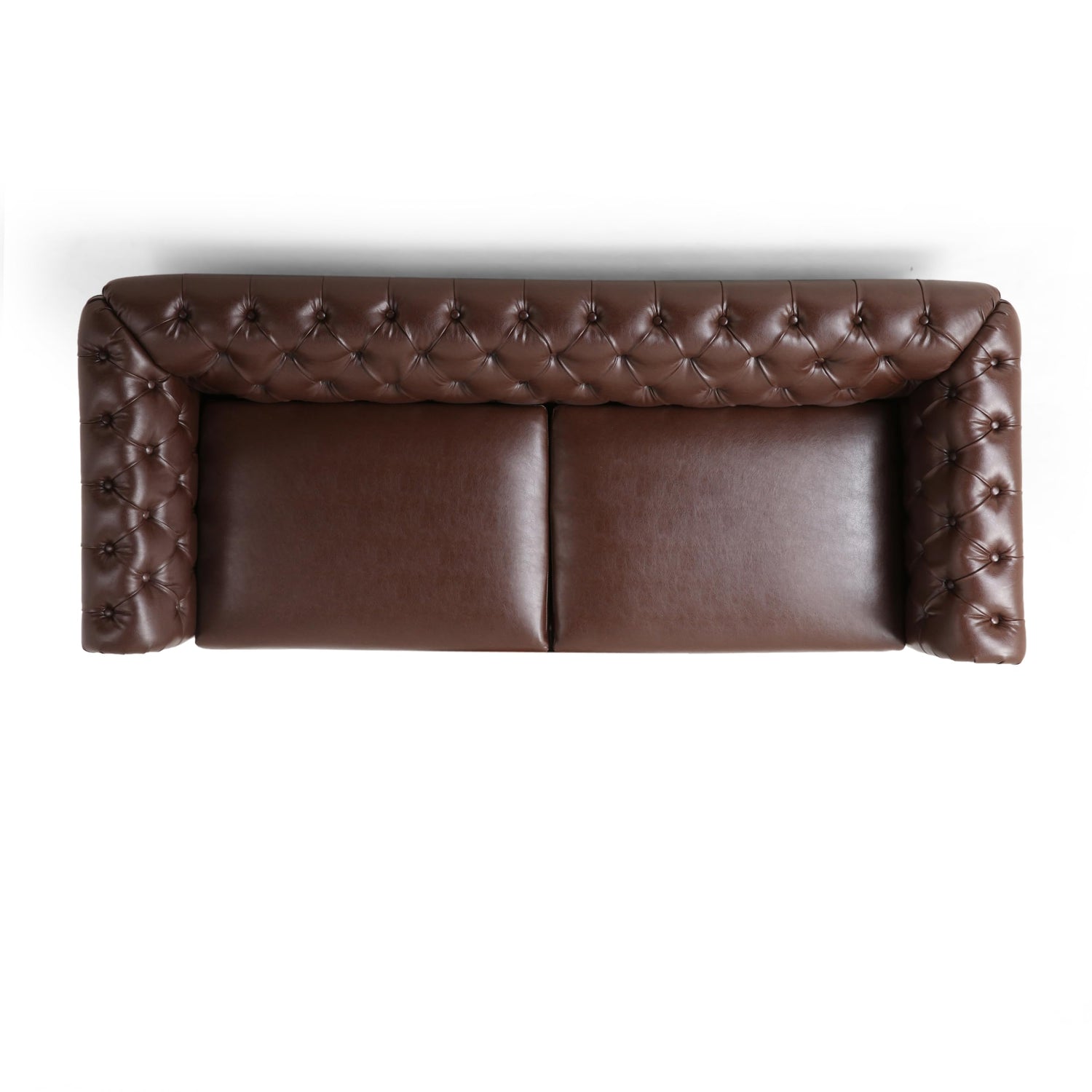 Merax PU Chesterfield Sofa, Retro Style Upholstered 3 Seater Leather Couch Rolled Arm for Living Room Bedroom Office, Dark Brown