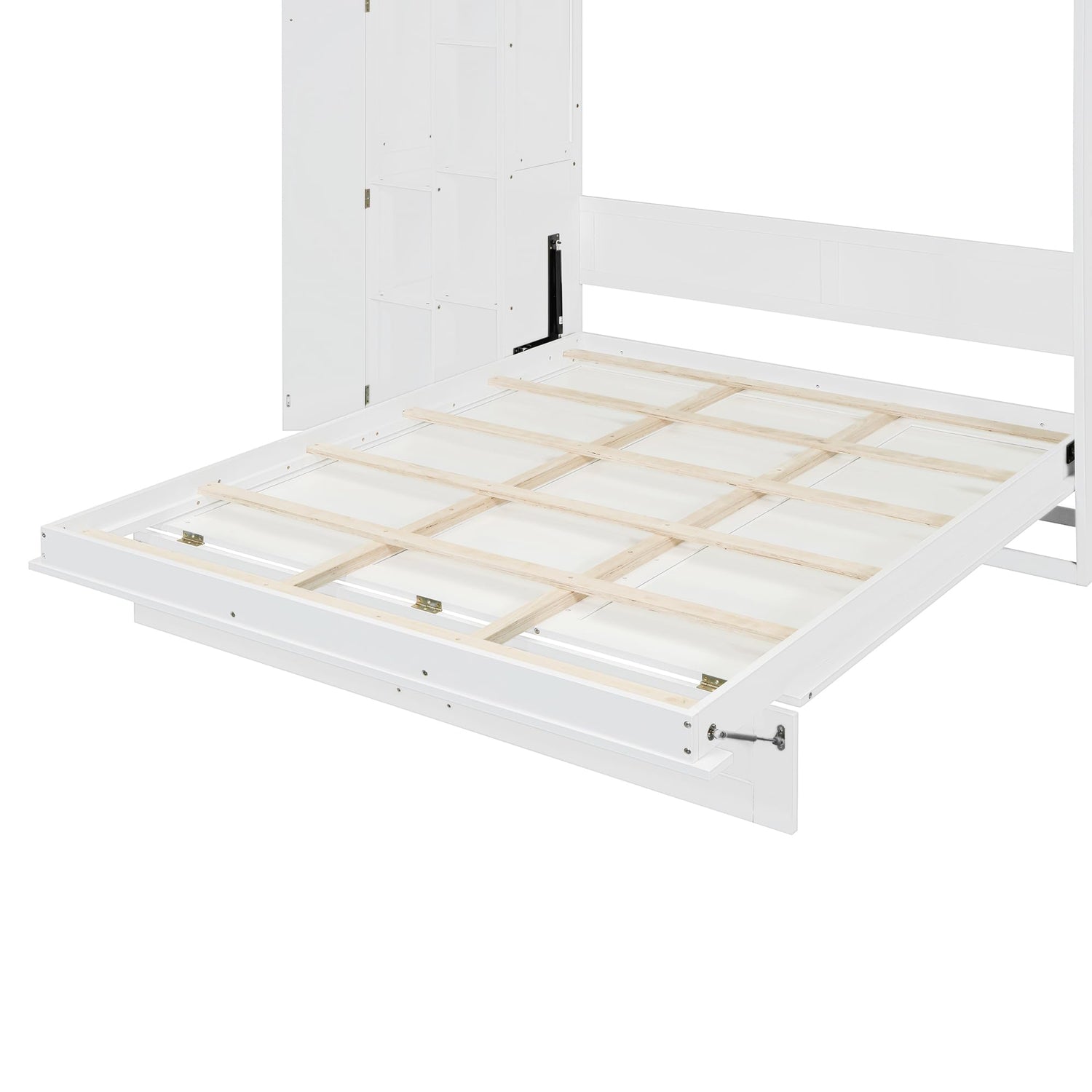 Merax Queen Murphy Bed with Wardrobe, Murphy Bed Cabinet Queen with Storage Shelves and LED Lights, No Box Spring Needed, White