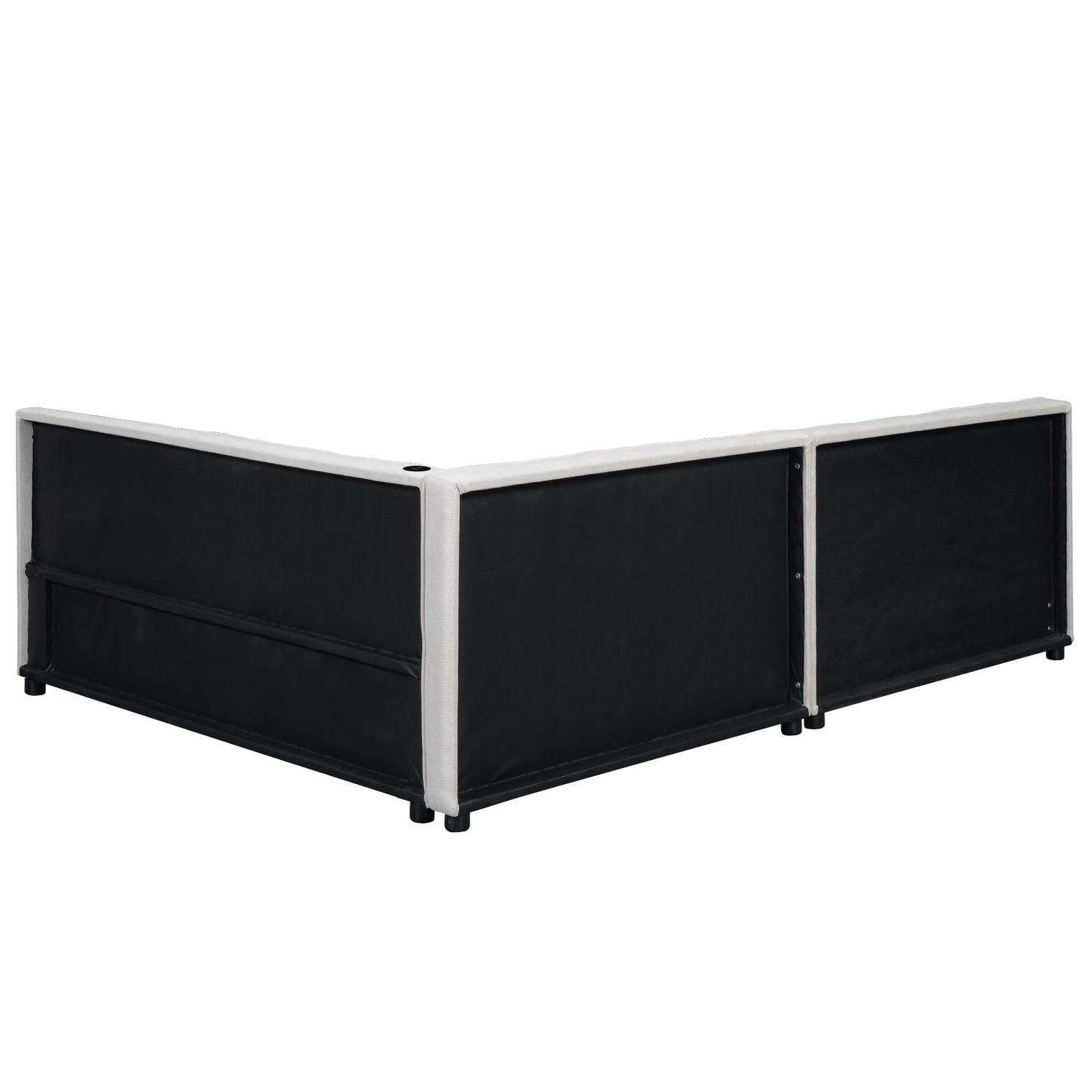 Merax Queen Size Modern Upholstered Platform Bed with USB Ports, Floor Daybed with Wood Slat Support/Queen,Beige