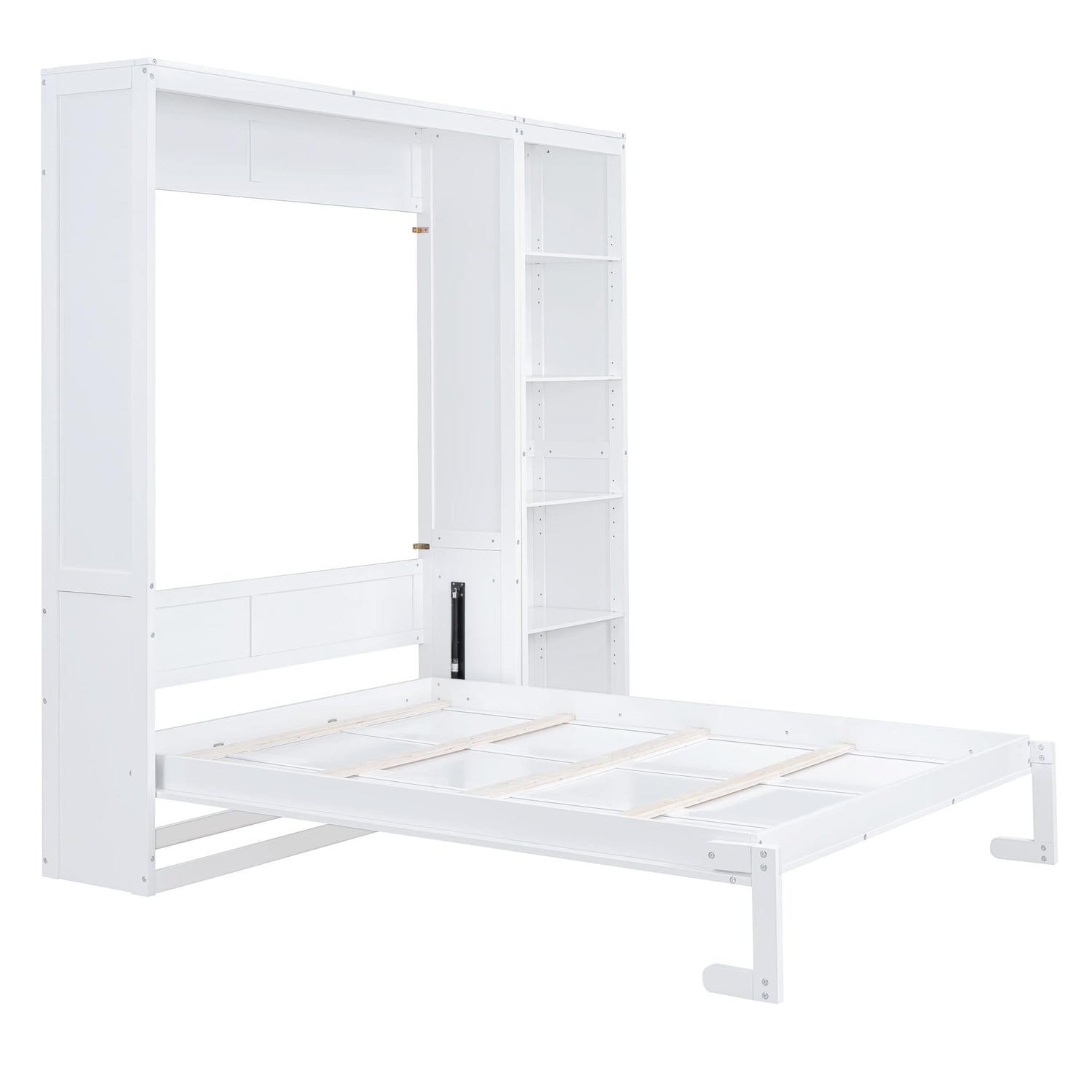 Merax Queen Size Murphy Bed Wall Bed with Storage Shelves, Space-Saving Design Foldable Platform Bed Frame, Fold into The Wall, Multifunctional Bed for Guest-Room, Home, Office, White