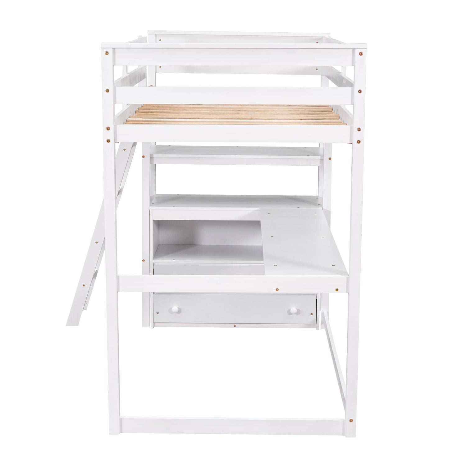 - [Multifunctionl Design] This Loft Bed includes a desk, shelves and two large storage drawers in one.Not only provides you with a place to work or study, but also provides a large storage space.