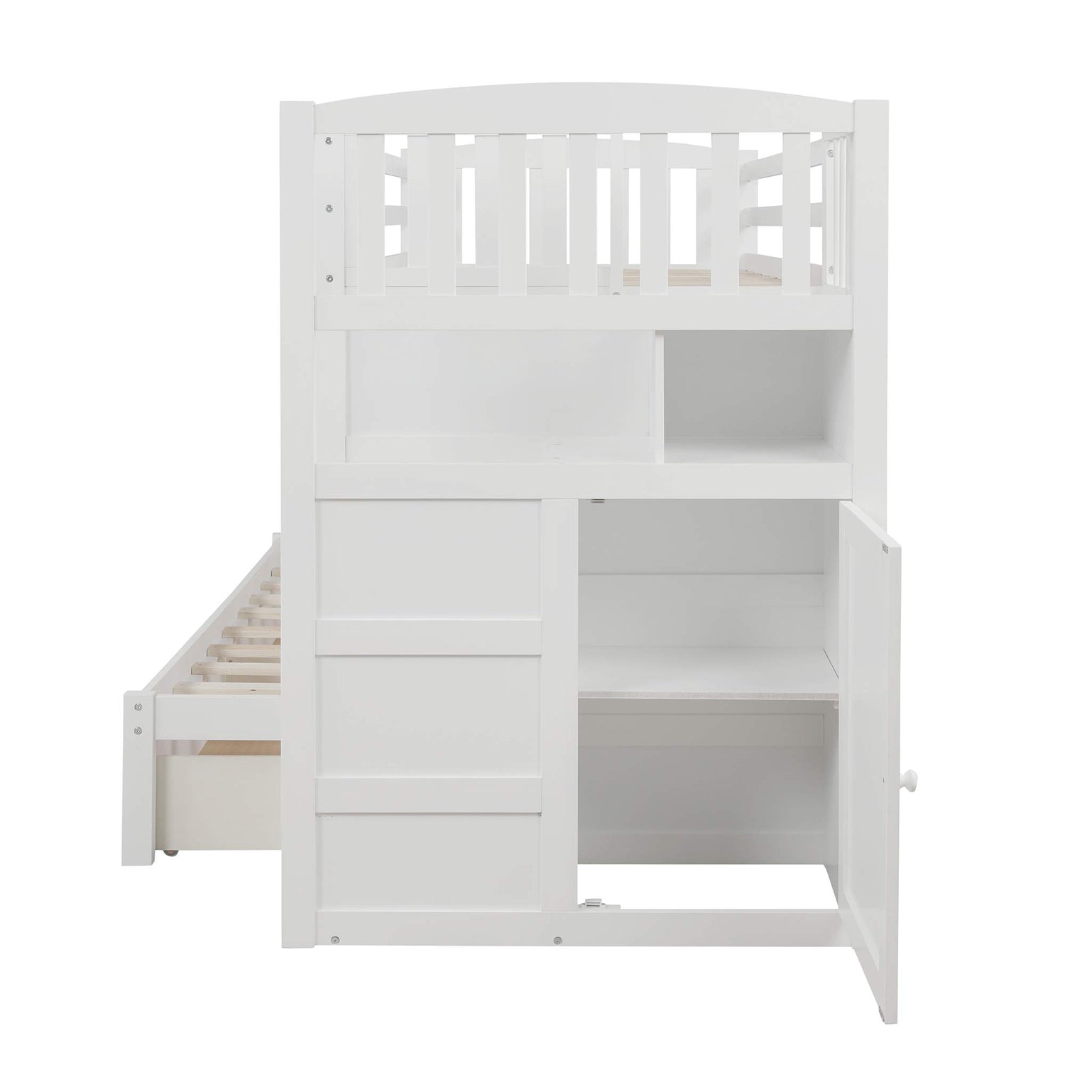 Merax Twin Over Full/Twin Wood Bunk Bed with Storage Shelves and Drawers, Wooden Convertible Bed Frame for Bedroom, No Spring Box Needed, White