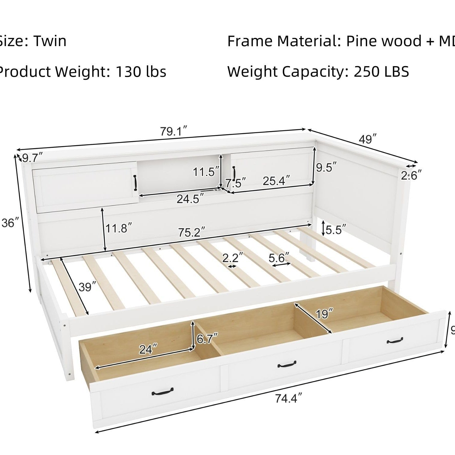 - High Quality Daybed: All parts of the twin bed frame with storage have been polished many times, beautiful craftsmanship, smooth surface won't scratch your fingers, the twin bed frame with storage is made of pine wood, sturdy and durable.