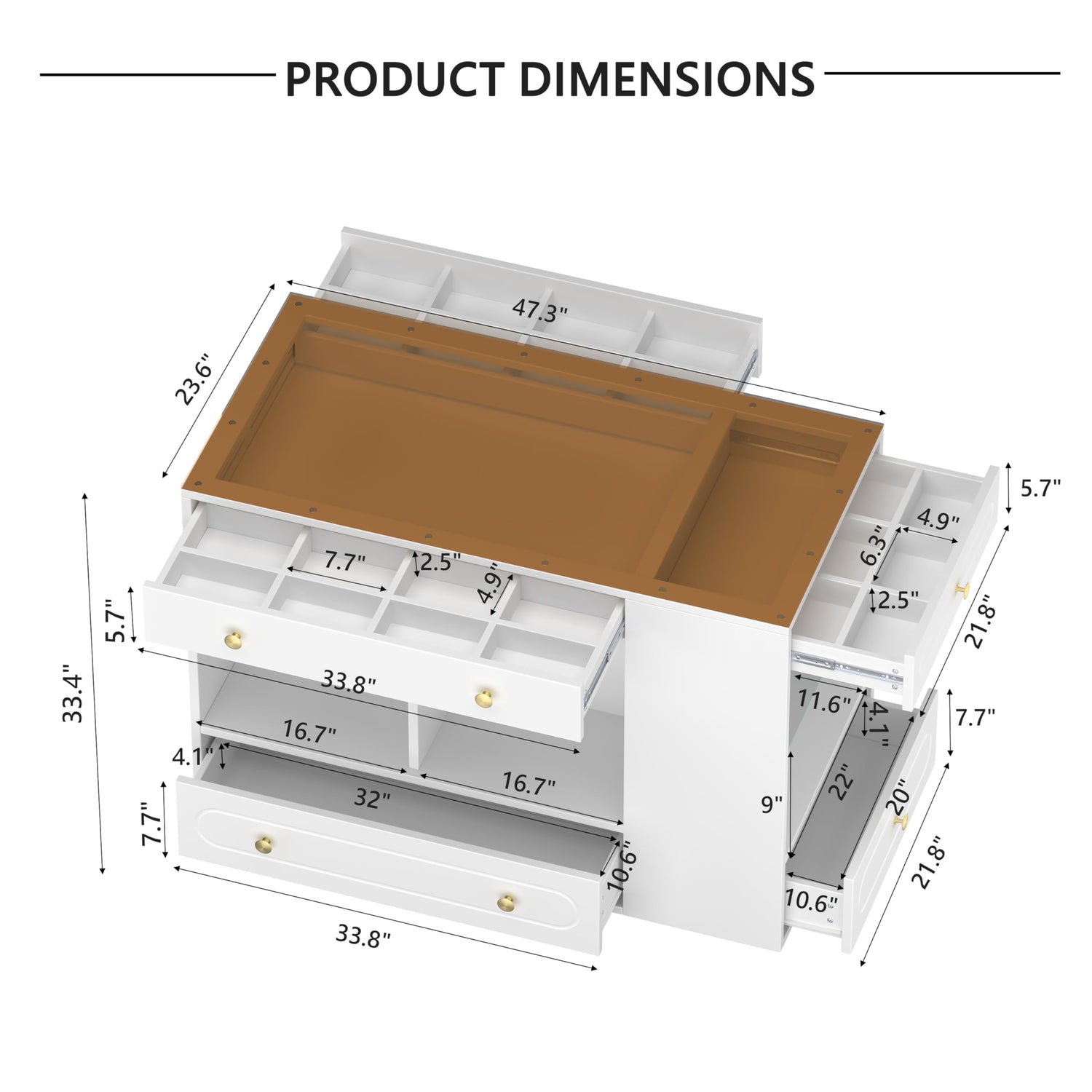 - Durable & Sturdy:Crafted from high-quality MDF, particle board and thick tempered glass, this island is built to last. Its sturdy construction ensures long-term durability and reliable support for daily use. Overall Product Dimension: 47.3"L X 23.6"W X 33.4"H. Our walk-in closet island comes with labeled parts and clear instruction, making assembly a breeze.