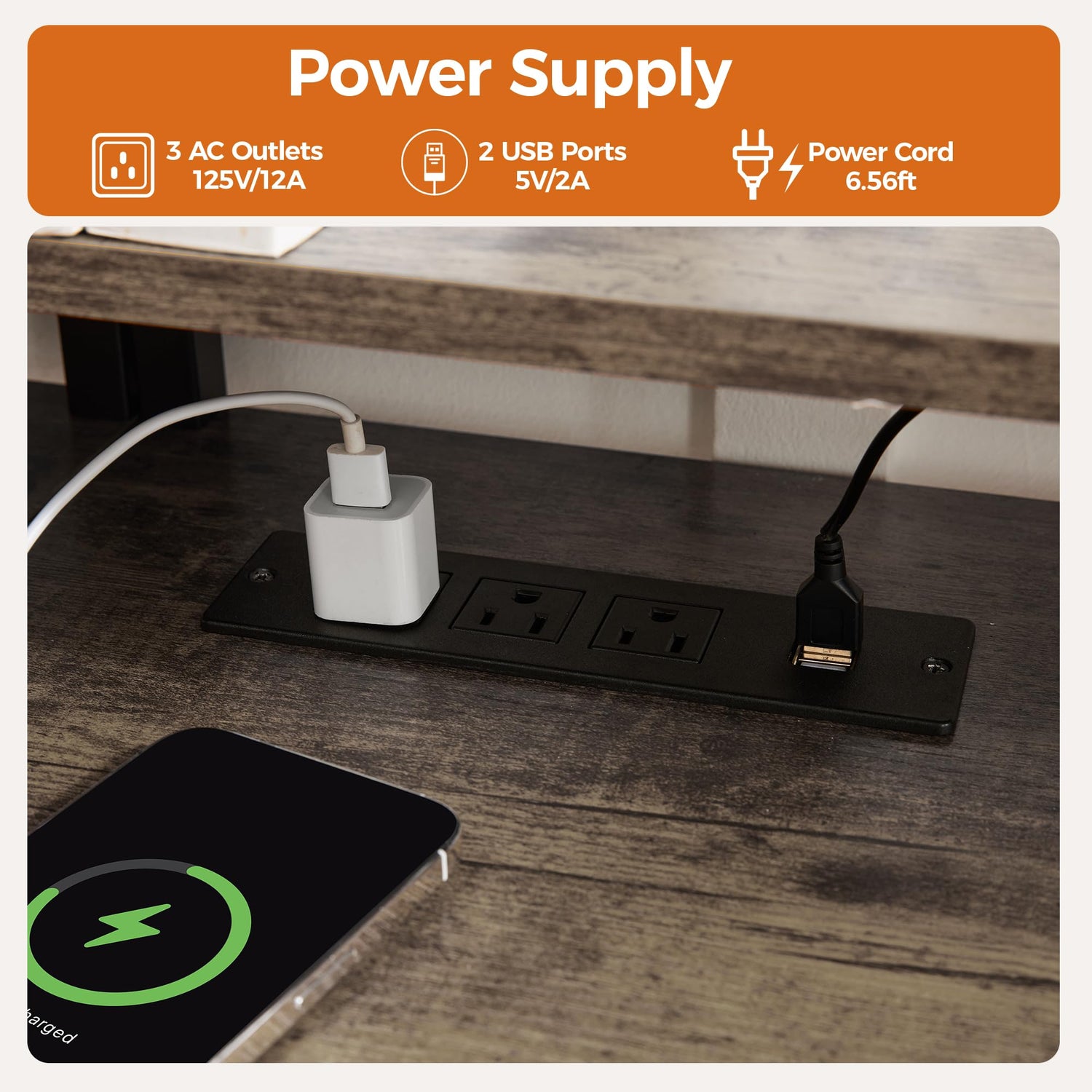 - 【USB Charging Ports &,AC Outlets】The built-in socket comes with 2 USB ports and 3 AC ports, which greatly facilitates the charging or power supply for various electronic devices such as computers, mobile phones and desk lamps. There is no need to look for additional power strips, keeping the desktop clean and tidy and avoiding the trouble caused by messy cables.