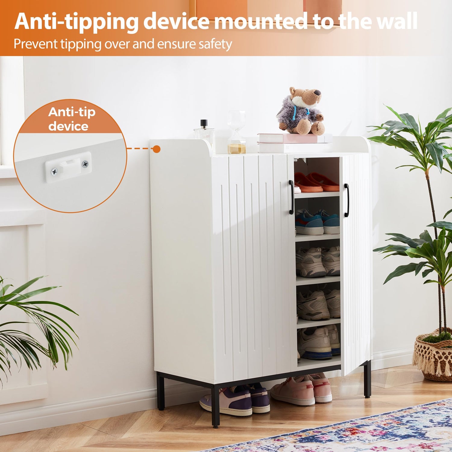 Mericonia Modern Shoe Cabinet with Metal Legs, Farmhouse Large 5-Tier Shoe Storage Cabinet with Doors, Wooden Shoe Organizer for Entryway, Hallway, Closet, Bedroom, Living Room, White