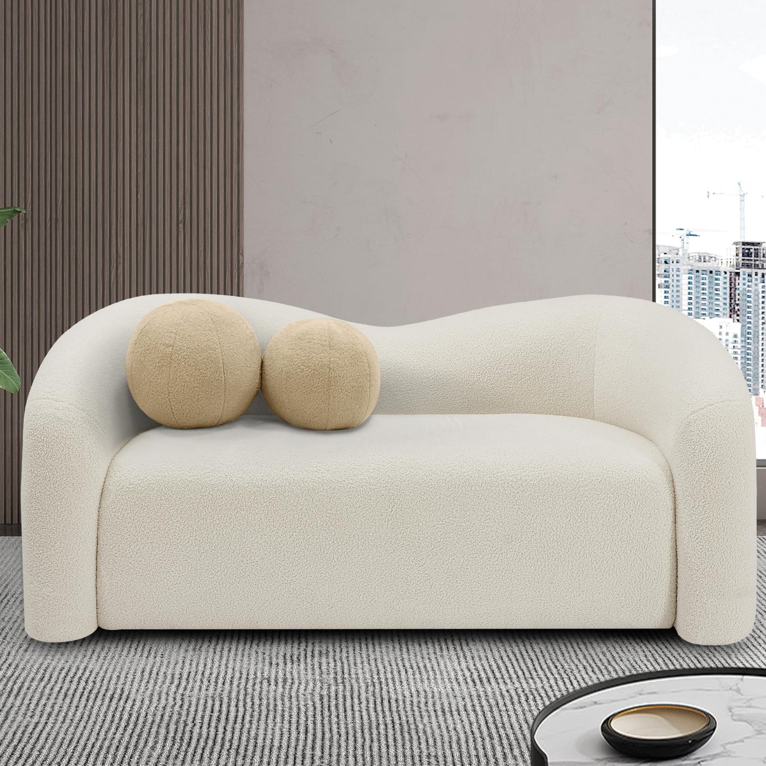 Meridian Furniture 186Cream-L Kali Collection Modern | Contemporary Loveseat with Soft Cream Faux Shearling Teddy Fabric, Curved Back, 62" W x 33" D x 27" H, Cream