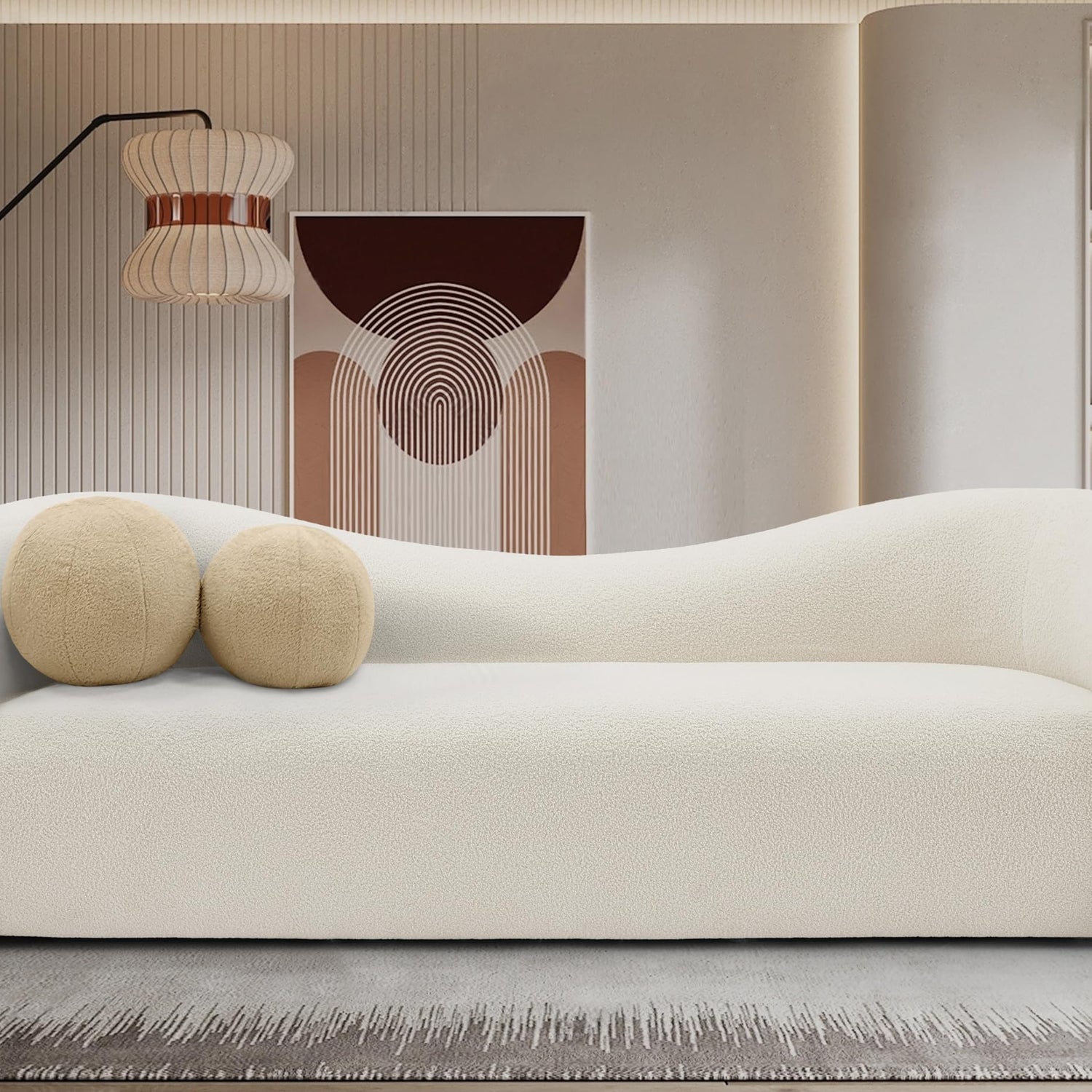 Meridian Furniture 186Cream-S Kali Collection Modern | Contemporary Sofa with Soft Cream Faux Shearling Teddy Fabric, Curved Back, 86" W x 33" D x 27" H, Cream