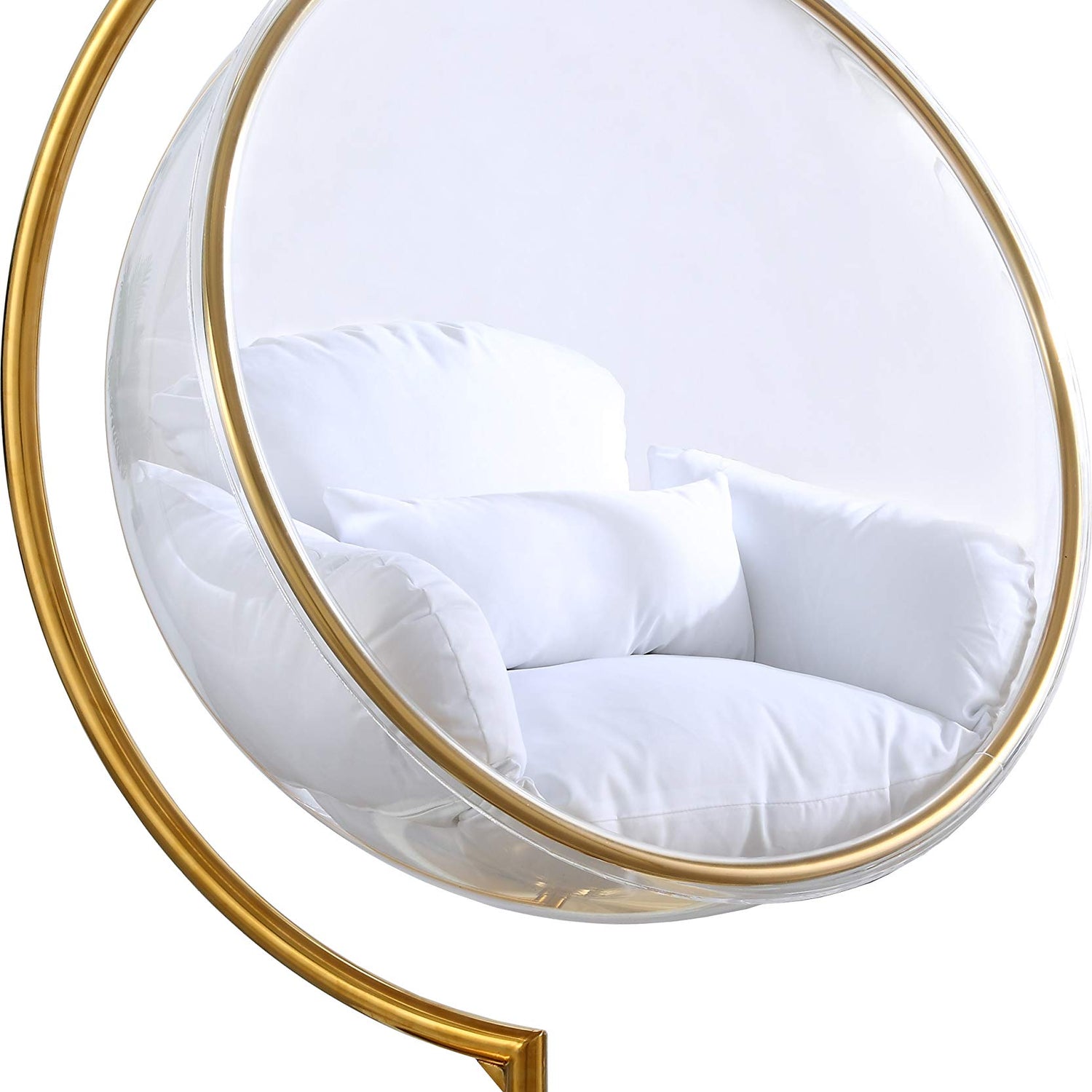 Meridian Furniture Luna Collection Modern | Contemporary Clear Acrylic Accent Swing Chair with Gold Metal Base and Durable Fabric Seat, 41.5" W x 29.5" D x 64" H, White