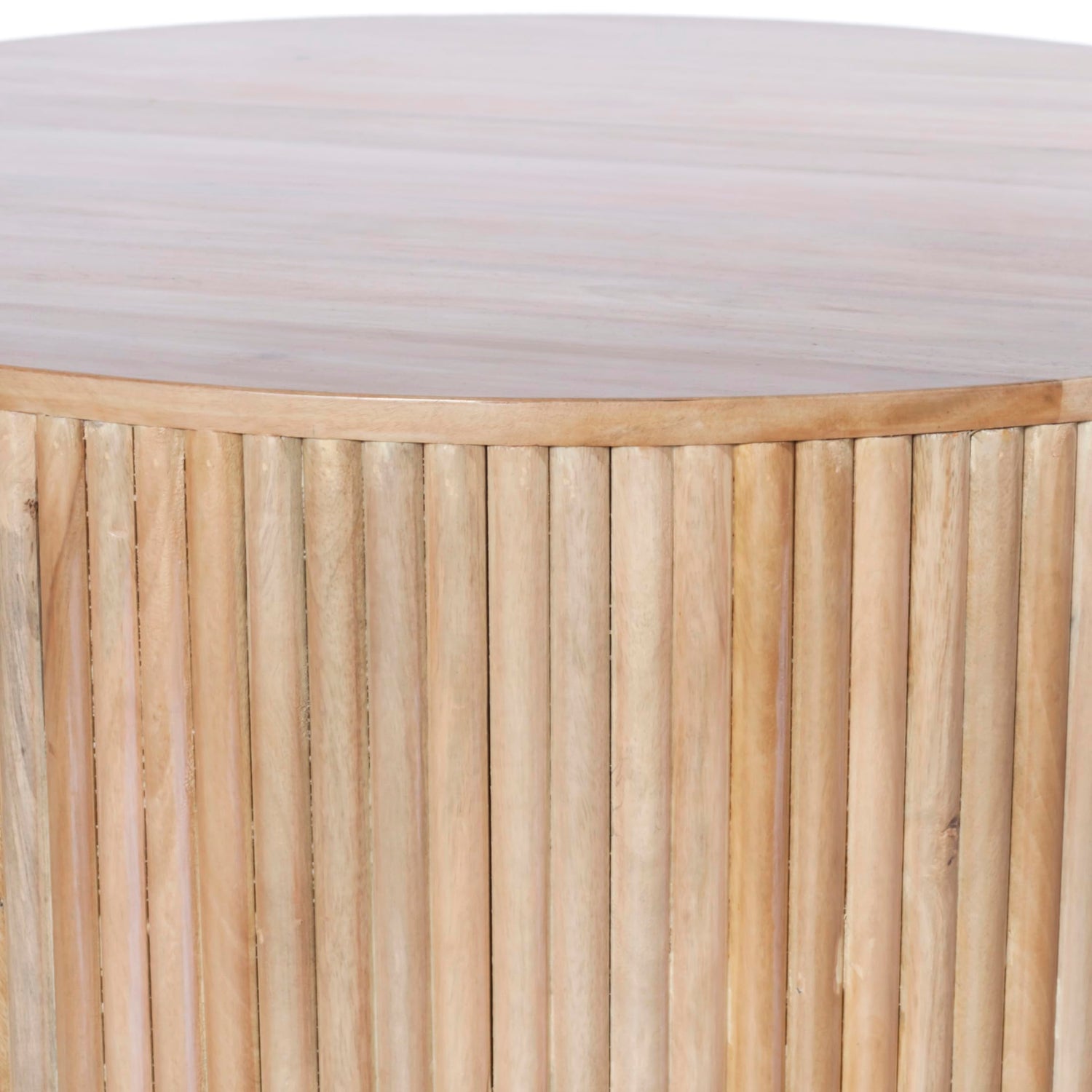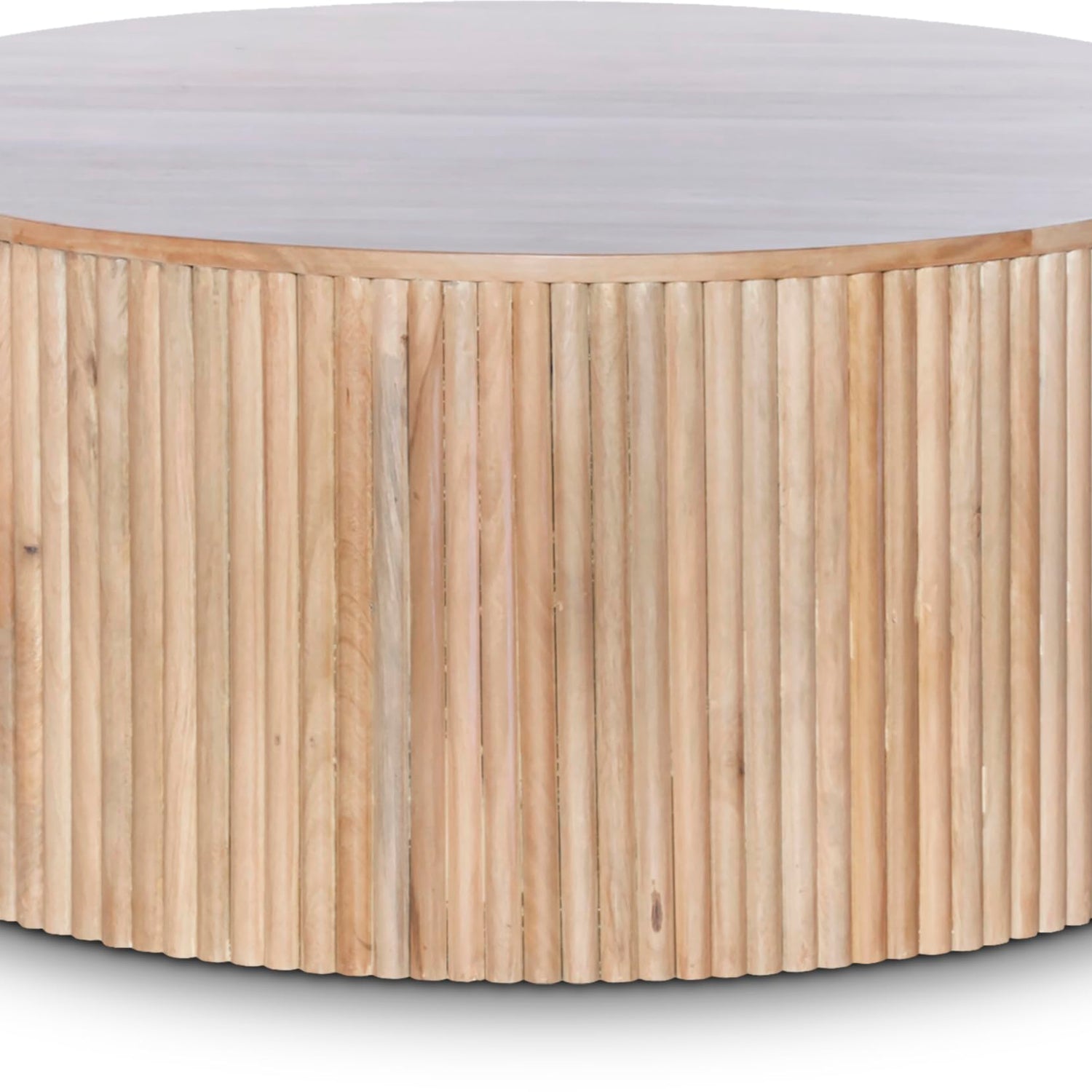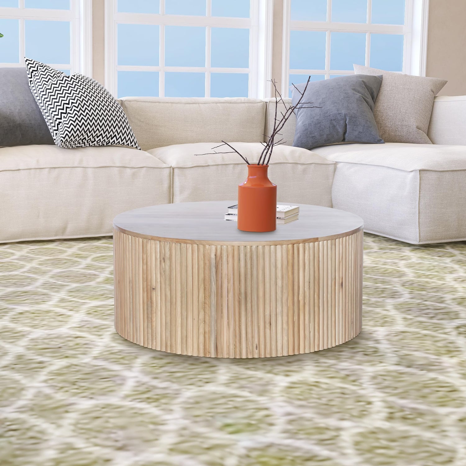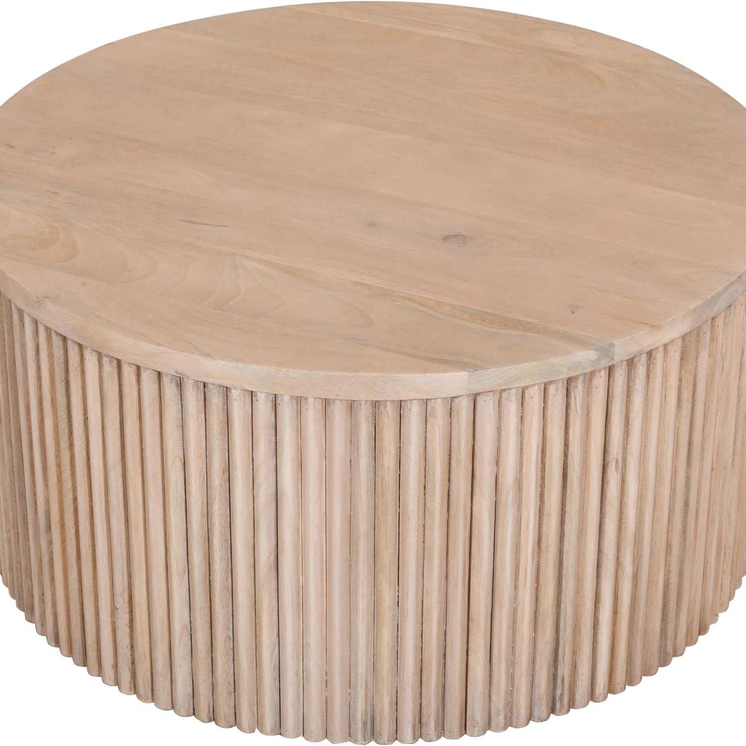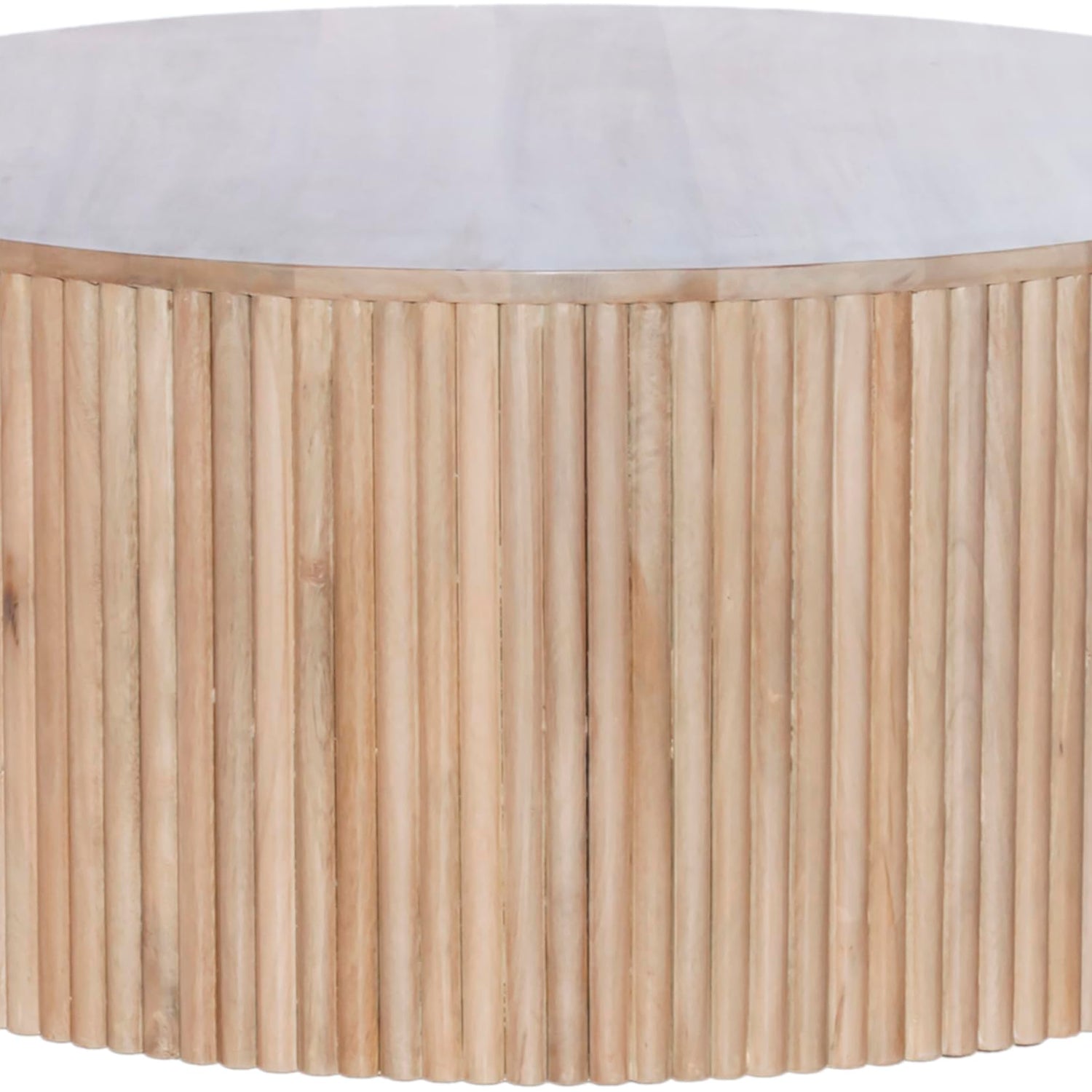 Details: Bring contemporary design to the forefront with the addition of this Oakhill Coffee Table to your living room or den. This eye-grabbing design features solid mango wood construction, so you can count on its durable demeanor to hold up to the rigors of use in your busy home. The fluted wood design is chic and contemporary, adding a distinctive modern vibe to your room in an instant. A white oak finish tops off the look of this Oakhill coffee table, adding to its visually striking beauty.
