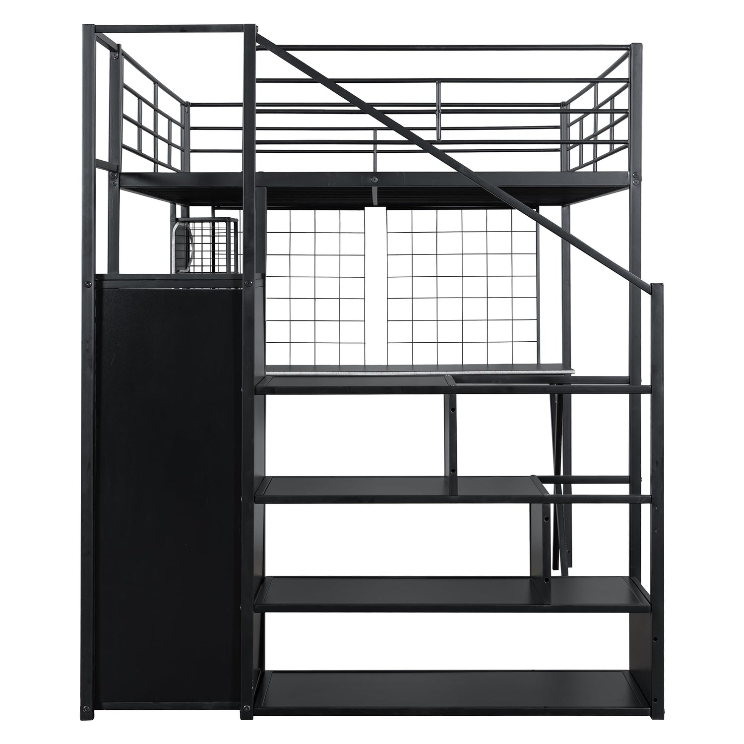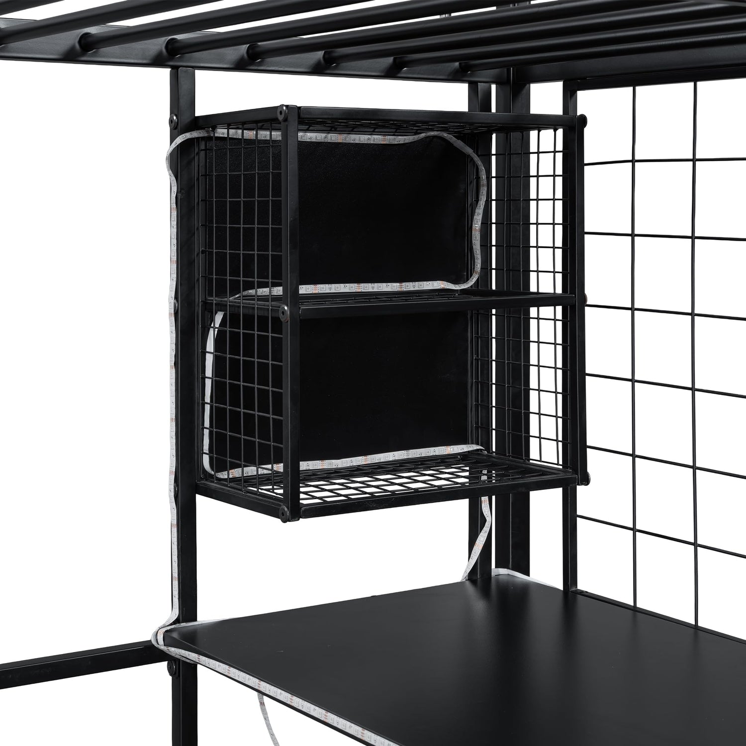 MERITLINE Full Gaming Loft Bed with Desk and Storage Wardrobe& LED RGB,Metal Gaming Bed with Stairs and Storage Case,for Adults Teens (Black)