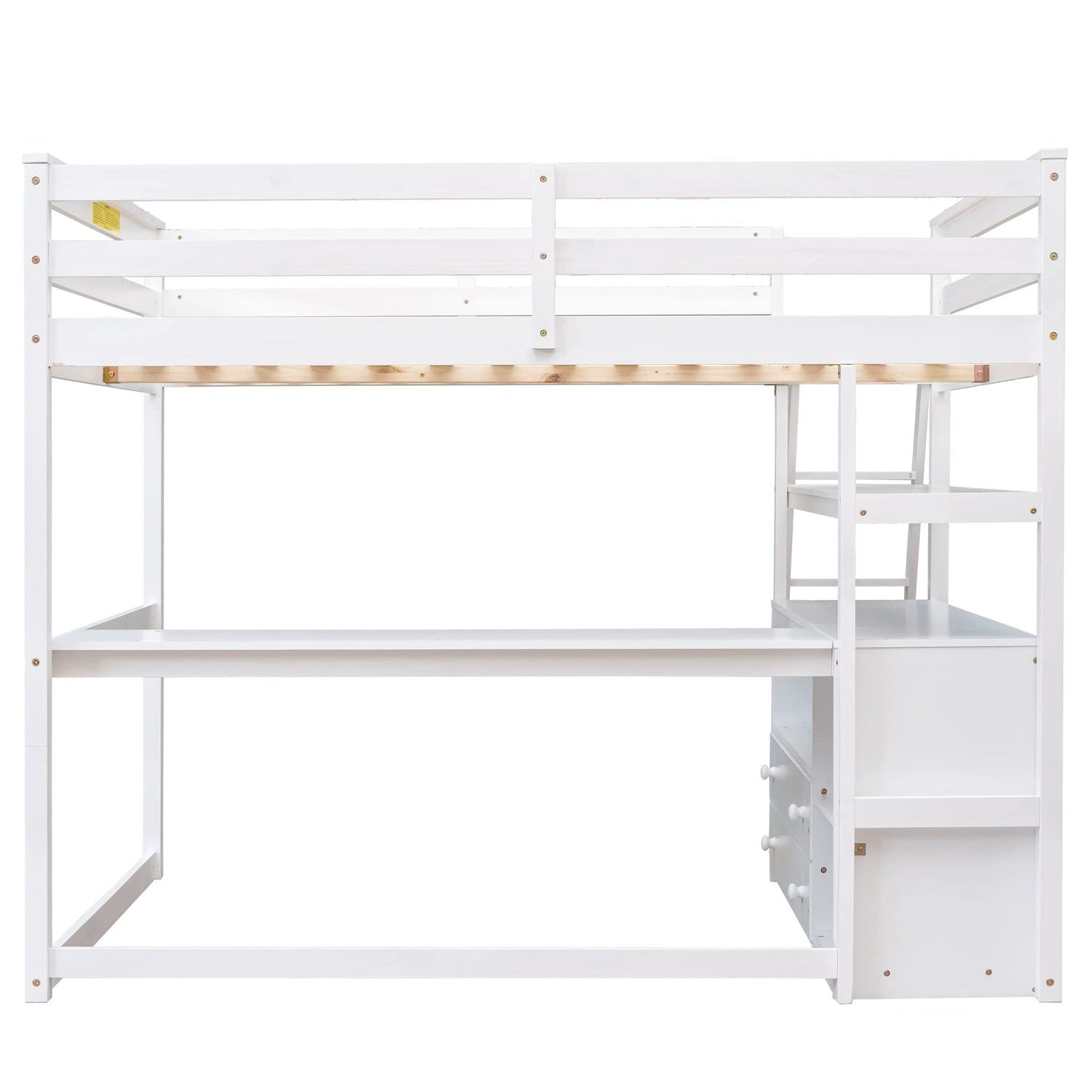 MERITLINE Full Size Loft Bed with Desk and Shelves, Wooden Loft Bed Full with Storage Drawers for Kids Teens Boys Girls,No Box Spring Needed (Full, White)