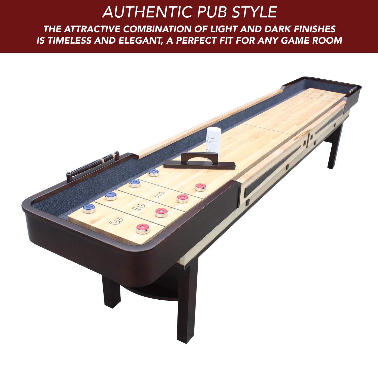 - AUTHENTIC PUB STYLE – Bring the classic game of shuffleboard home with the beautifully crafted Merlot Shuffleboard. The attractive combination of light and dark finishes is timeless and elegant. A perfect fit for any game room, this shuffleboard will supply endless fun for your friends and family.