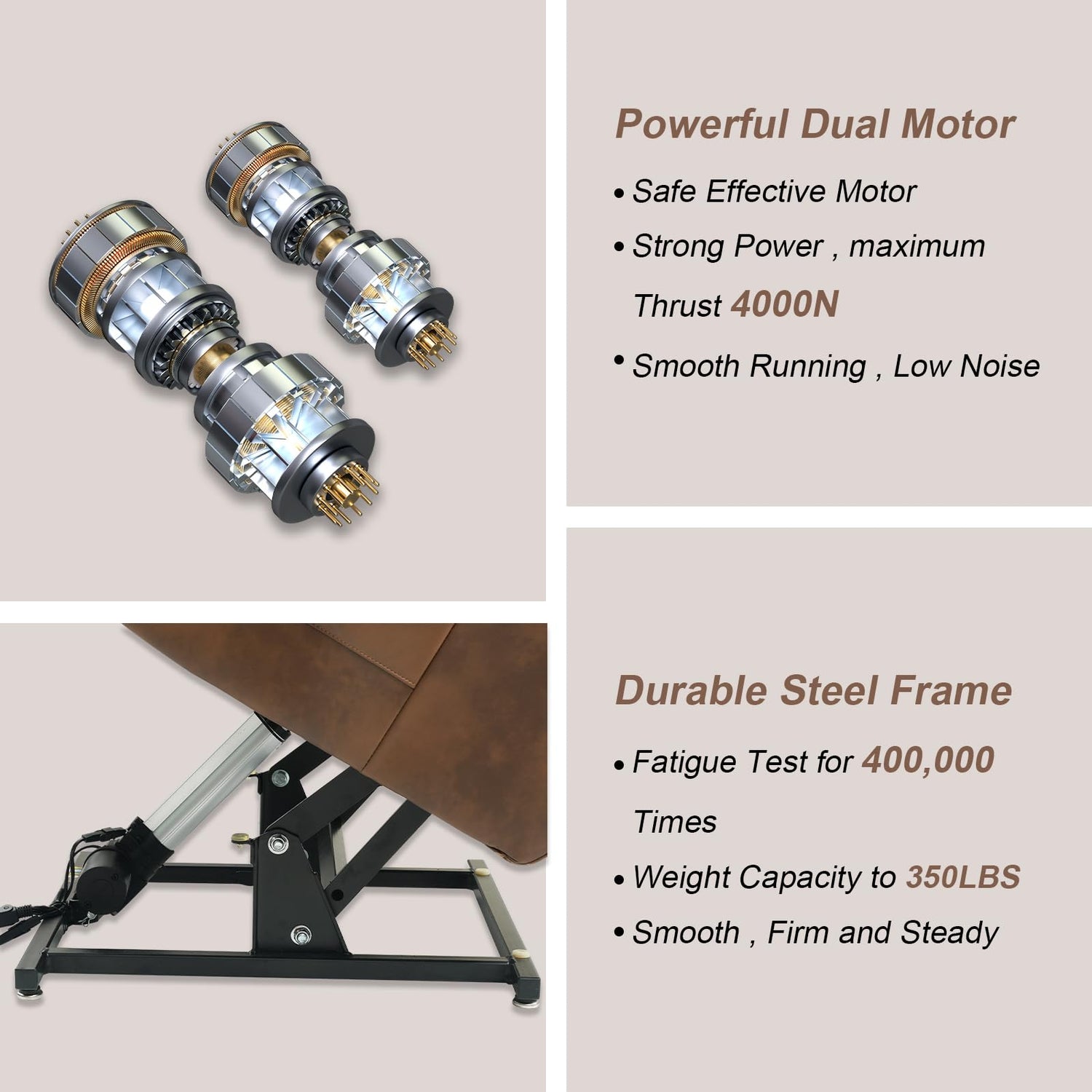 - 【Power Lift Assistance】The Dual OKIN Motor used is quiet and efficient in work, and has a lower failure rate compared to ordinary electric recliners. The upgraded design of 2 motors enables independent control of the backrest and footrest by simply pressing the remote control, facilitating easy standing for the elderly. It is ideal for individuals with leg/back issues, pregnant women, or those recovering from surgery.