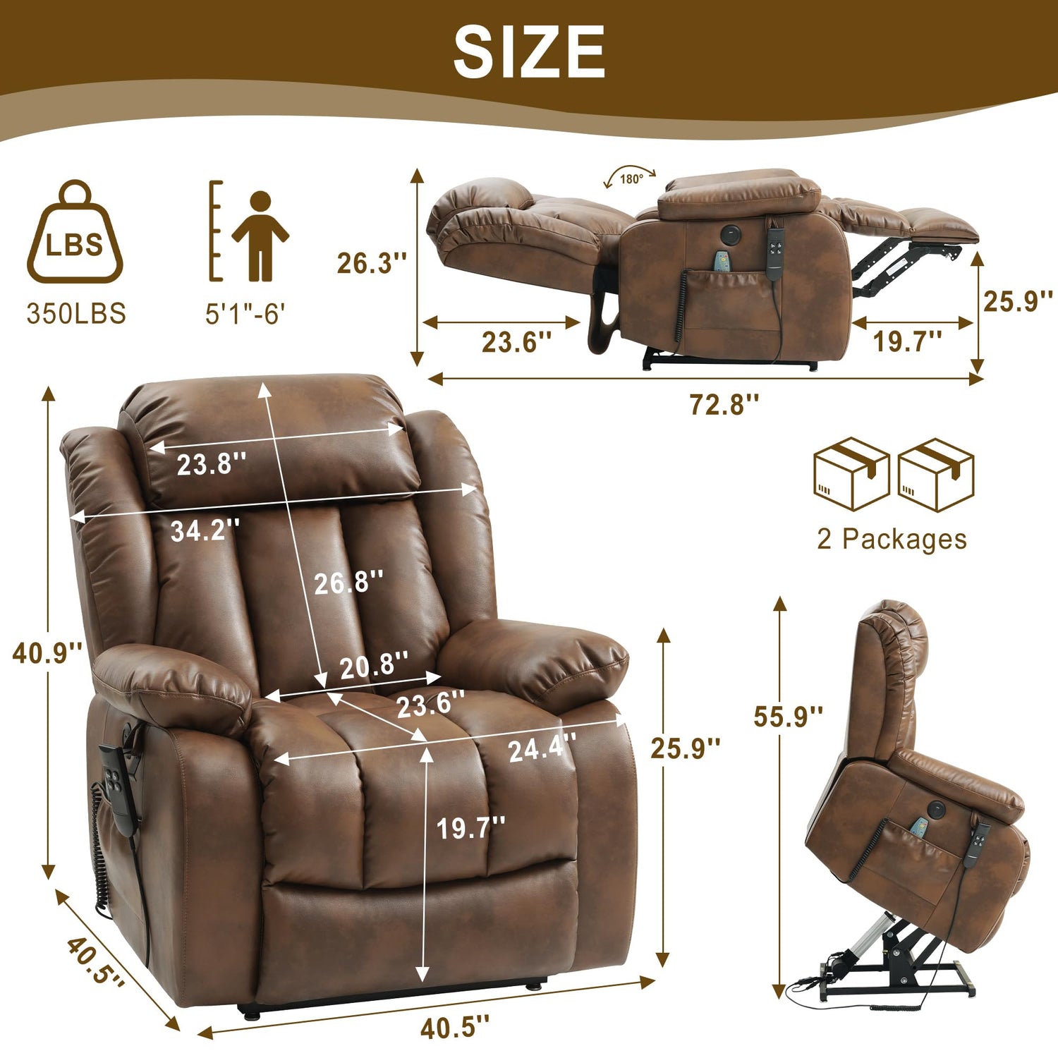 - 【Premium Leather & Stuffing】Our lift recliners are made of premium leather which is soft, breathable and wear resistant. Easier to clean than fabric lift chairs.The surface of the leather is also coated for protection and can be easily cleaned with a damp cloth. The backrest, seat cushion and armrests are generously filled with high-density sponge for ultimate comfort and support. It feels as if your whole body is wrapped up in the chair.