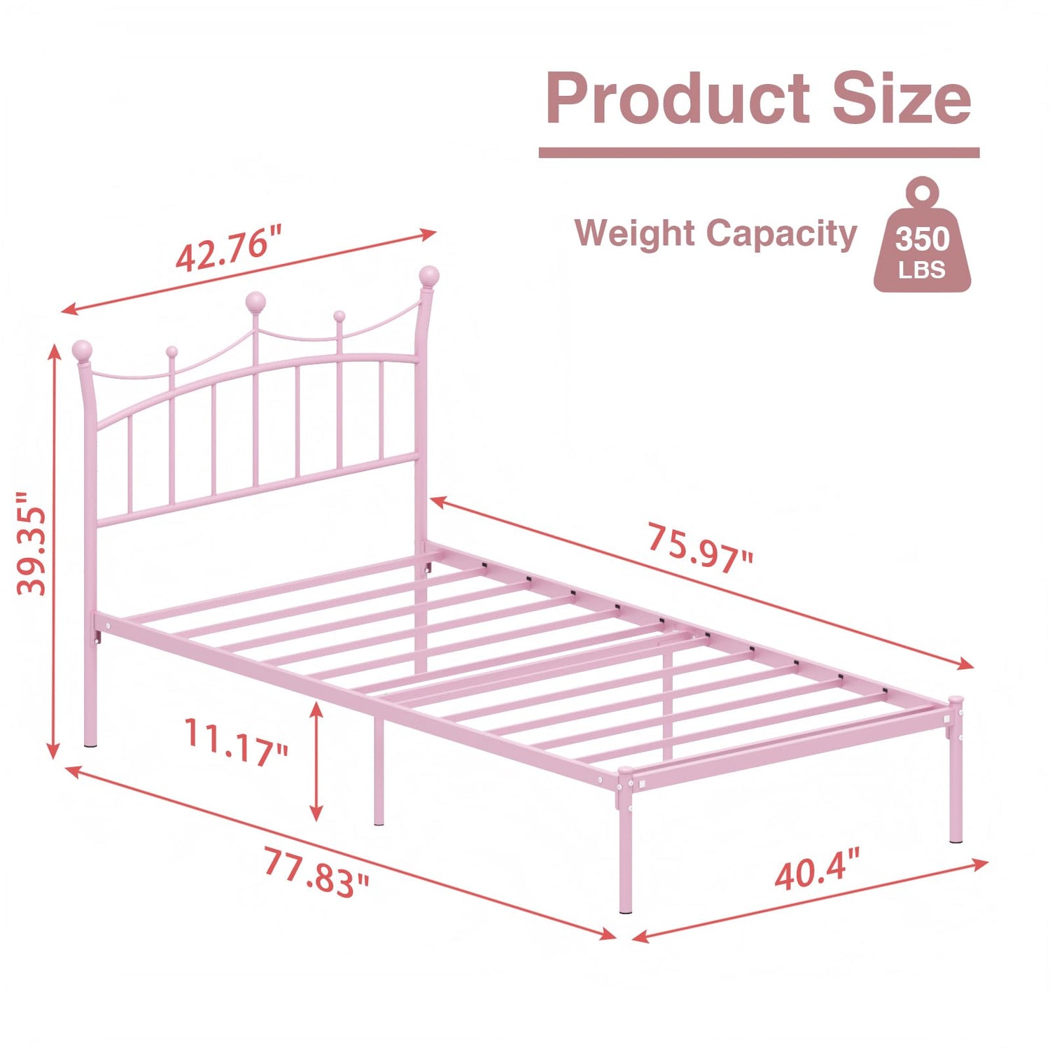 Merronix Twin Bed Frames with Headboard, Princess Bed for Girls Heavy Duty Metal Bed Platform Under Bed Storage Space No Box Spring Needed,Light Pink