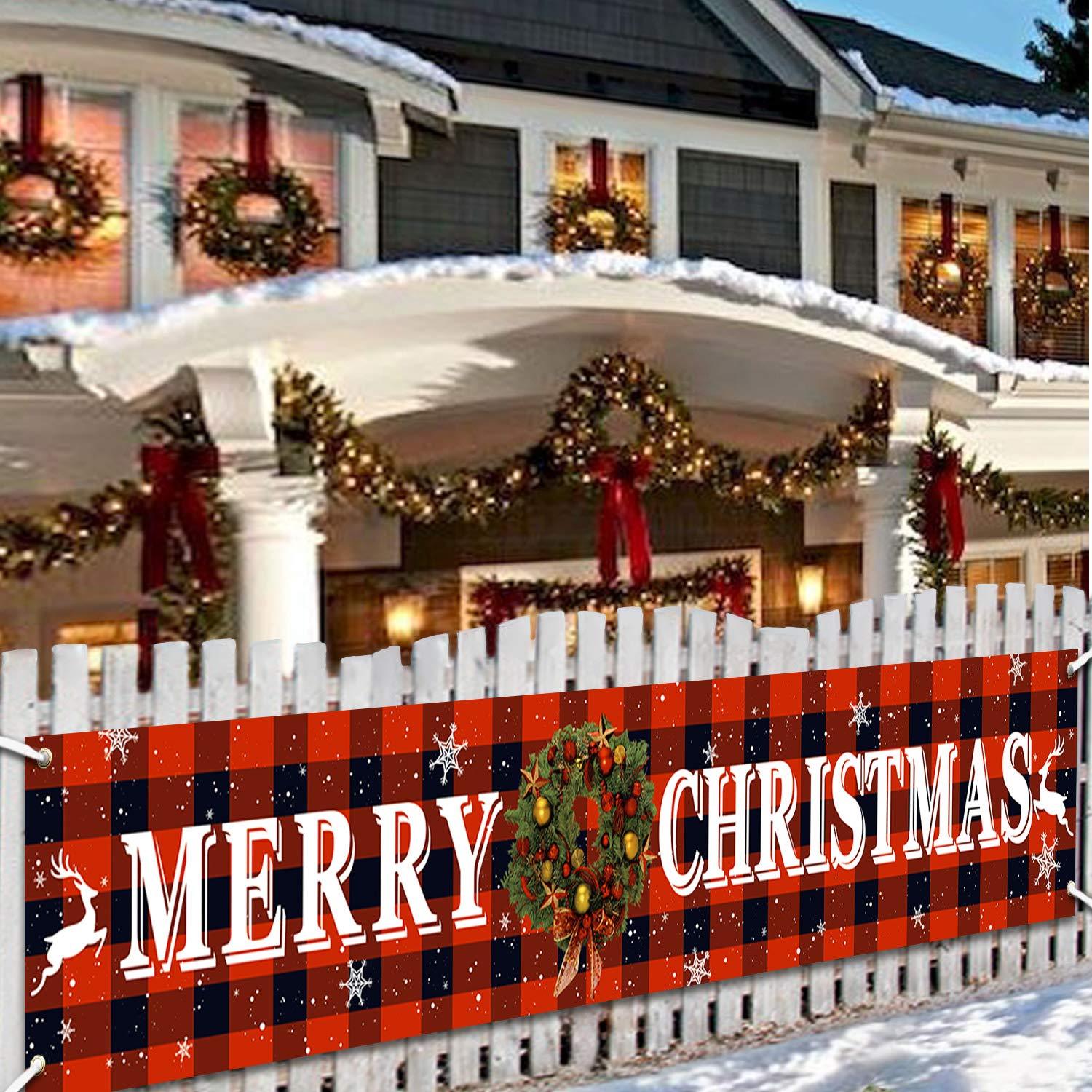 Merry Christmas Banner Christmas Eve Signs Huge Banner Decorations Giant Happy New Years Supplies Fence Yard Sign Indoor Outdoor Decorations Photo Backdrop 6 Feet