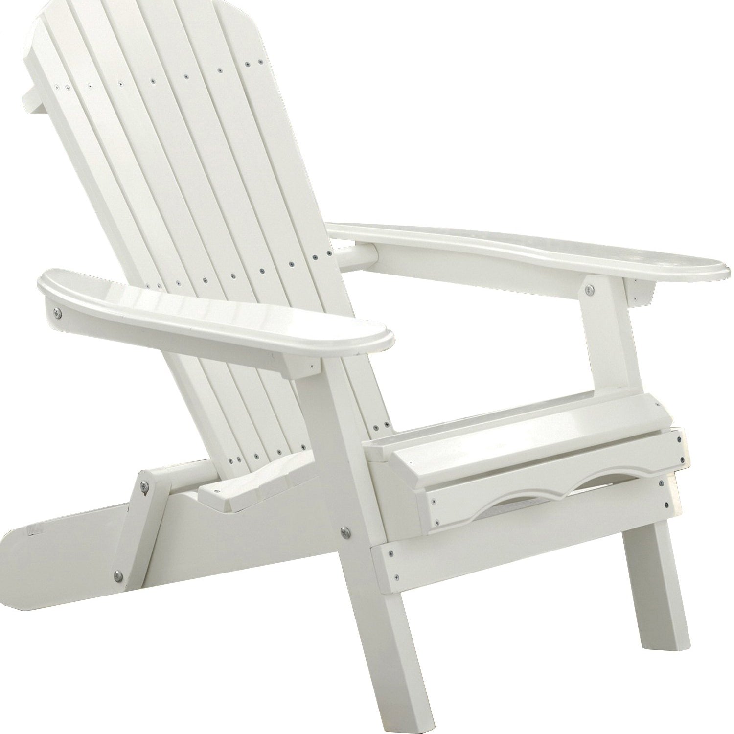 Details: This beautiful and durable outdoor Adirondack chair made out of Acacia Hardwood painted white folds flat for easy storage in winter for added convenience. Wide armrests and contoured seat were designed for exceptional comfort and is perfect as patio or lawn chair. Our folding Adirondack chair has ample space between arms to accommodate most body types.