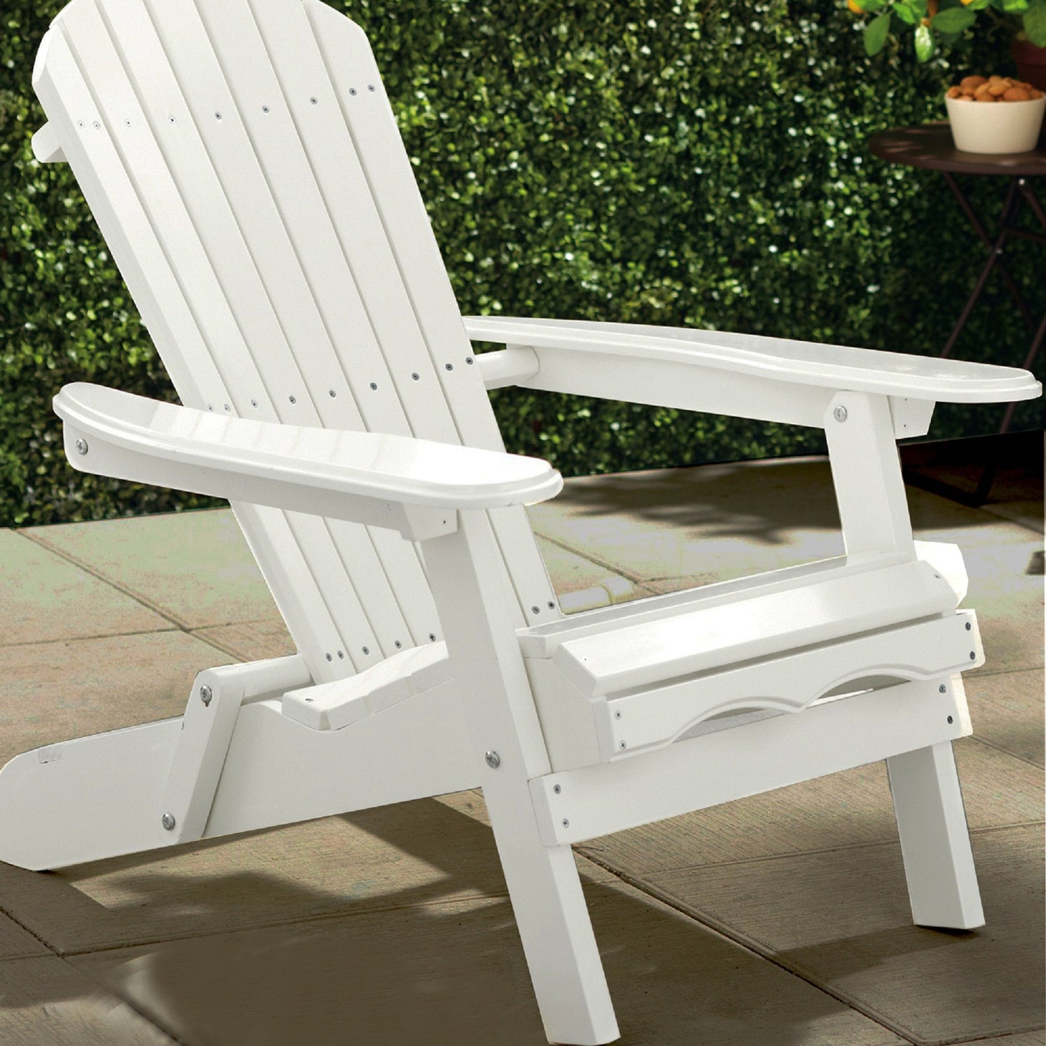 - Wood Adirondack Chair - This Foldable Adirondack Chair is made out of weather-resistant Acacia hardwood and painted a soothing white