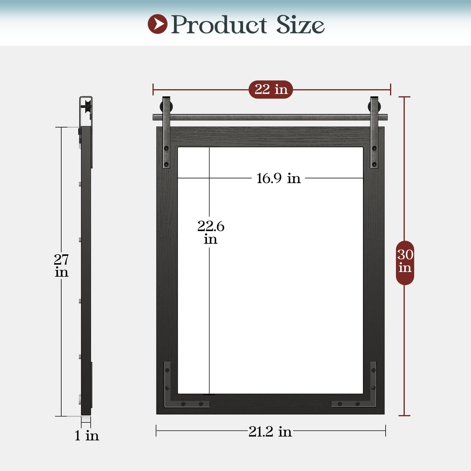 - Please Note: The overall size is 30 x 22 x 0.67 inches, and the display size of the glass mirror surface is 22.7 x 16.9 inches. The iron bracket hardware of the mirror' top is non-sliding. It means that the mirror will not move left or right along the track