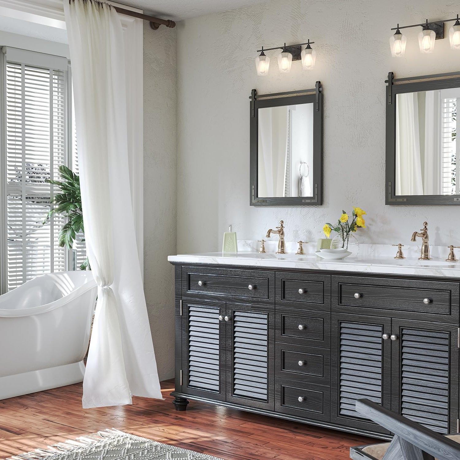 - Easy Installation: The bathroom vanity mirror comes fully assembled and can be easily installed in seconds with the metal hangers on the back of the mirror. The rustic bathroom mirror for over sink does come with an installation guide, four expansion tubes, four screws, and can be installed easily according to the installation guide