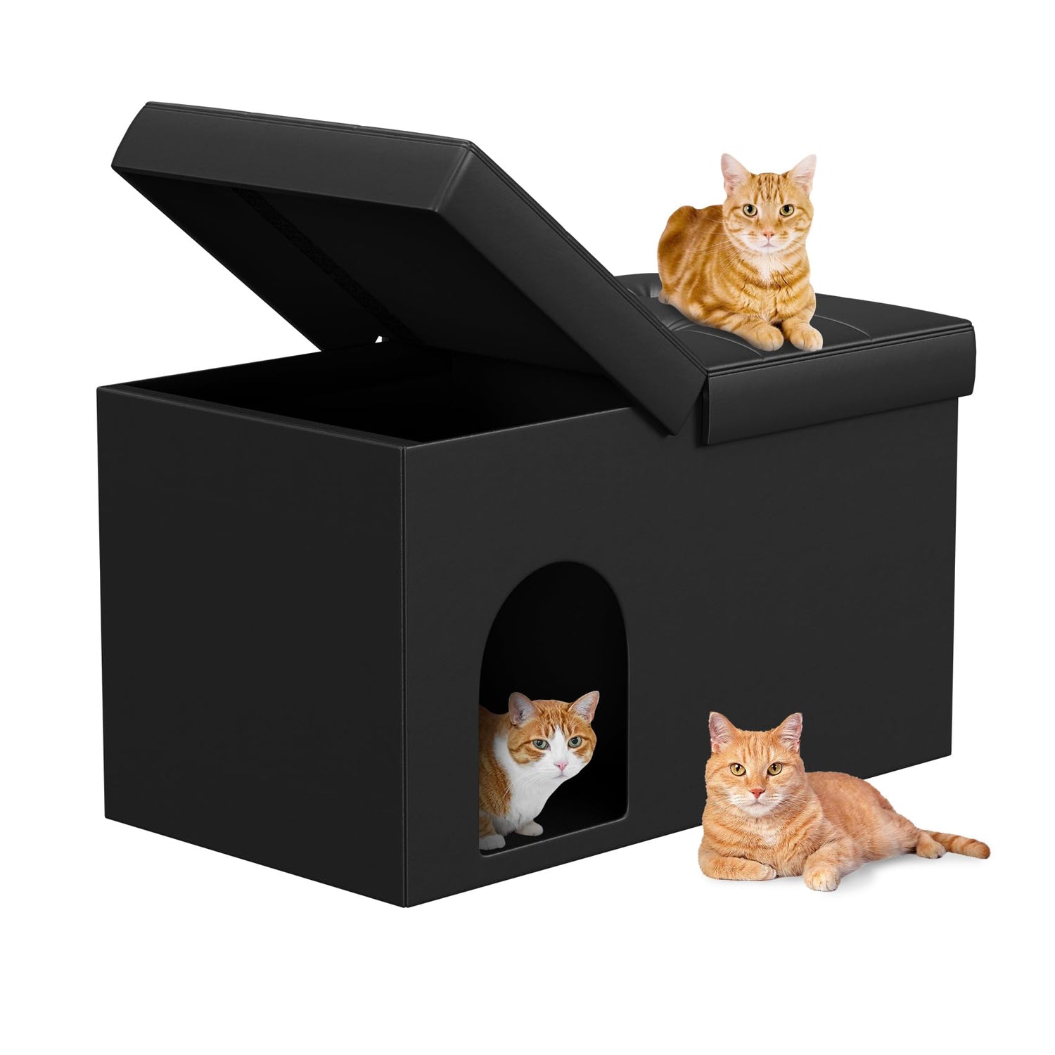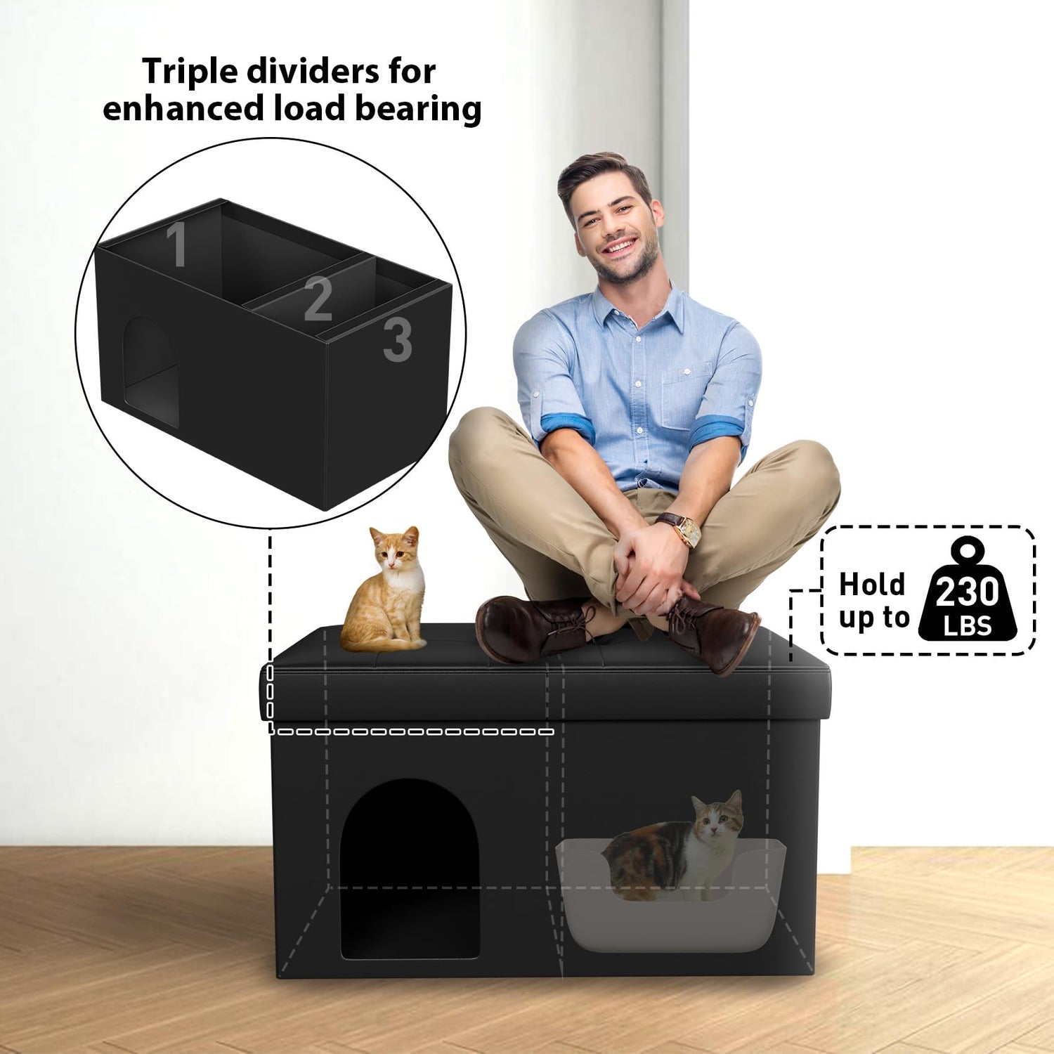 - 【Multifunctional Cat Litter Box Furniture】It hides cat litter boxes to contain all lingering stink and also works great as footstool and storage ottoman or bench