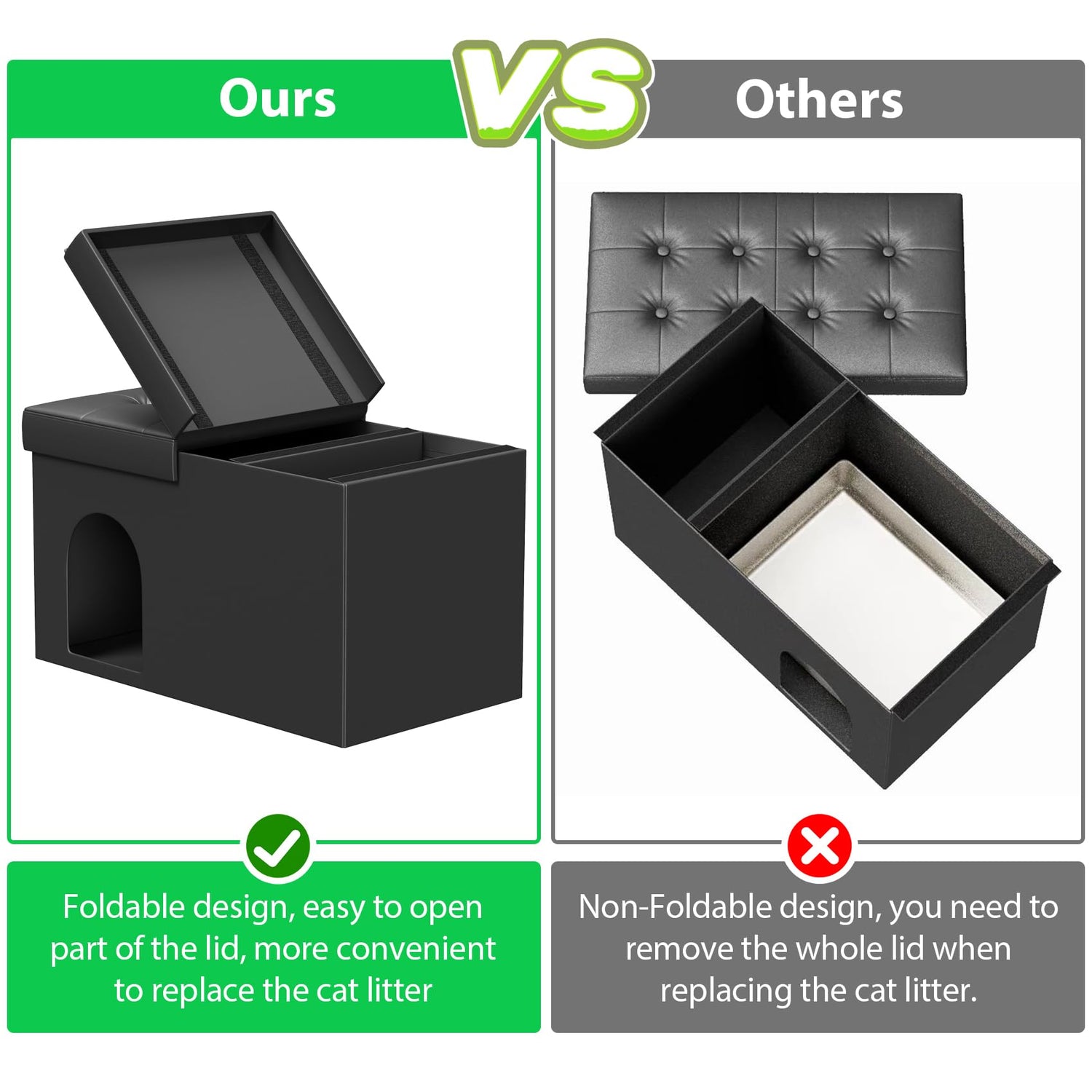 - 【Easy to Clean】The top of this litter box furniture is foldable, lift desgin lid without the need of removing the entire cover for cleaning. Cat litter box enclosure is made of easy-to-clean leather.
