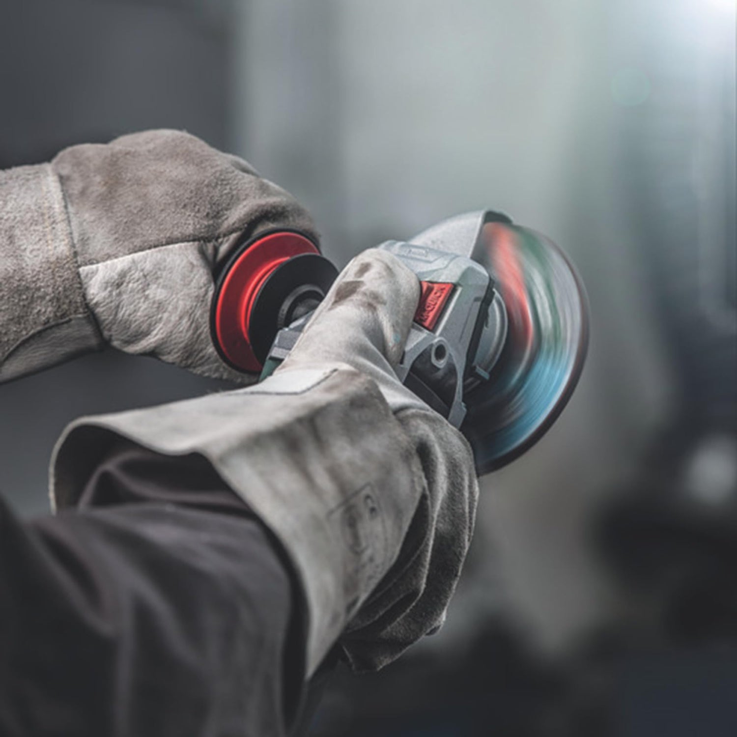 Details: The Metabo Pro Series Angle Grinder is a top-of-the-line tool, engineered and manufactured in Germany for durability, safety, and productivity. The grinder is designed to be versatile; including a tool-free, burst-proof adjustable guard for both metal grinding and masonry cutting applications. The powerful LongLife AC/DC motor delivers up to 50% more torque for faster material removal and up to 20% higher overload capacity for ultimate durability. The patented motor also includes features such as an unobstructed rear air intake, optimized internal air flow, and epoxy coated copper windings that extend outside of the field coil for advanced heat dissipation and protection against abrasion. The winding protection grid extends the life of the armature up to 5 times in harsh environments. Safety is a top priority with the Metabo S-Automatic mechanical safety slip clutch, which helps reduce the likelihood of kickback and allows the user to maintain control in case of an accessory jam. The ergonomic grip design reduces fatigue, while the rubberized side handle has a bulb-shaped grip and 15-degree offset for optimal handling, reduced fatigue, and improved ergonomics. This helps distribute forces evenly across the hand, lowering the risk of long-term work-related disorders of the hand, wrist, and arm. The die-cast aluminum gear housing is designed to dissipate heat from the motor and has oversized bearings and heavy-duty gearing. It is also rotatable, allowing for multiple switch positions.