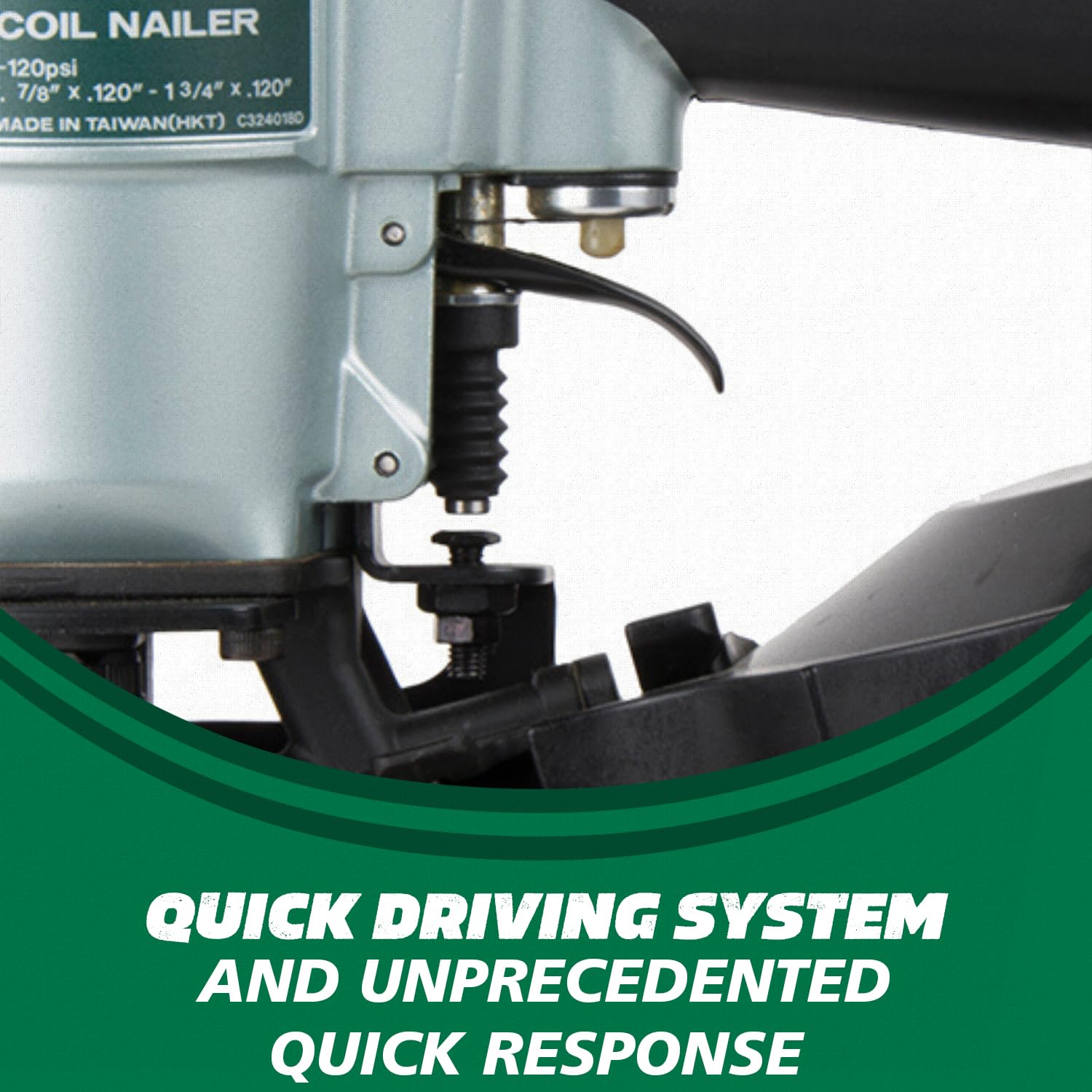 - POWERFUL AND EFFICIENT: Our quick response power nailer drives up to 3 roofing nails per second. This roofing tool has a high-capacity magazine that holds 120 roofing nails, so you can cover wide surfaces quickly with minimal replenishing time.