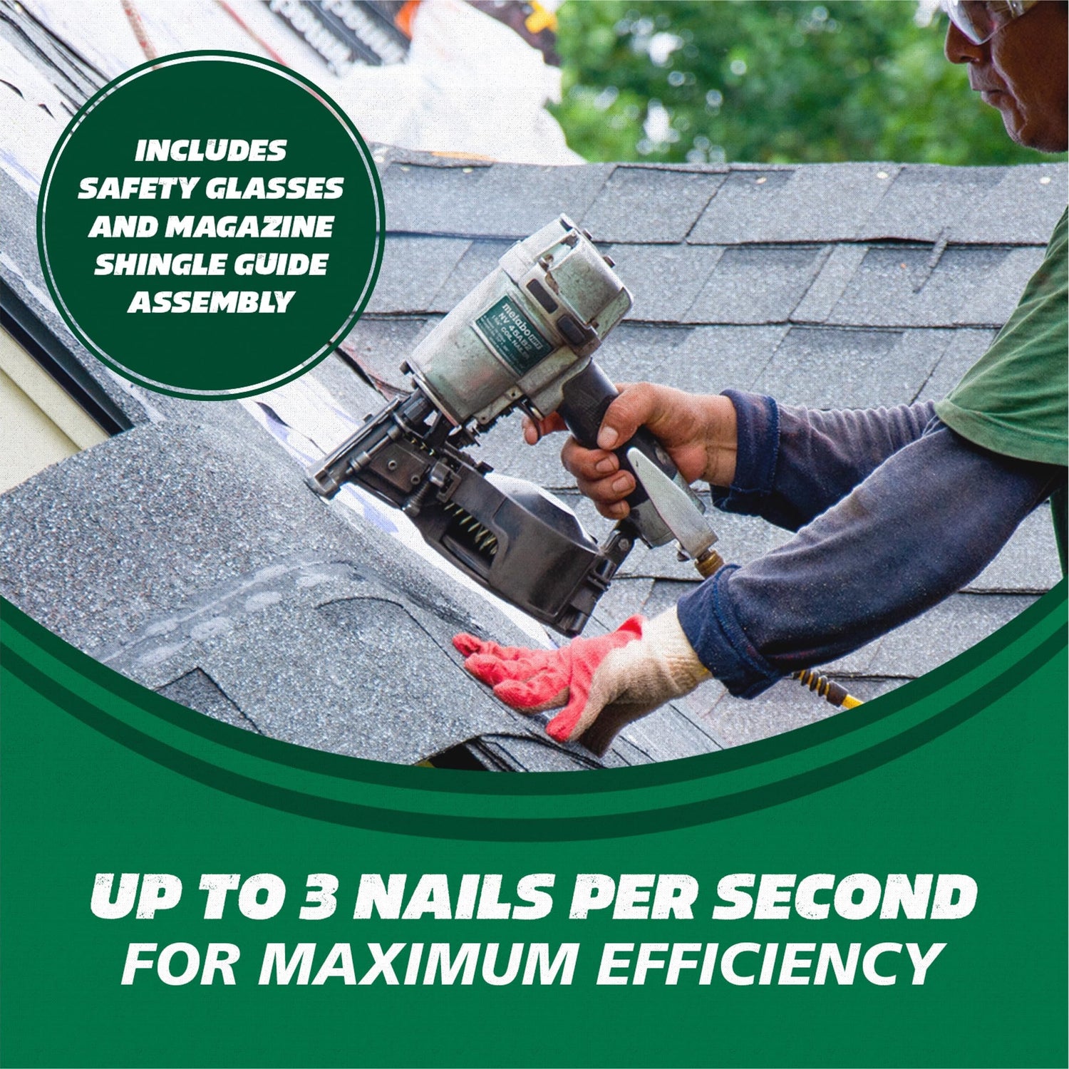 The Metabo HPT Roofing Nailer takes the hassle out of roofing projects. This pneumatic roofing nailer will complete your roofing tools set. You can trust that this product will meet your needs and exceed your expectations. Invest in the best with the Metabo HPT Roofing Nailer and experience the difference in power roofing nailers today.
