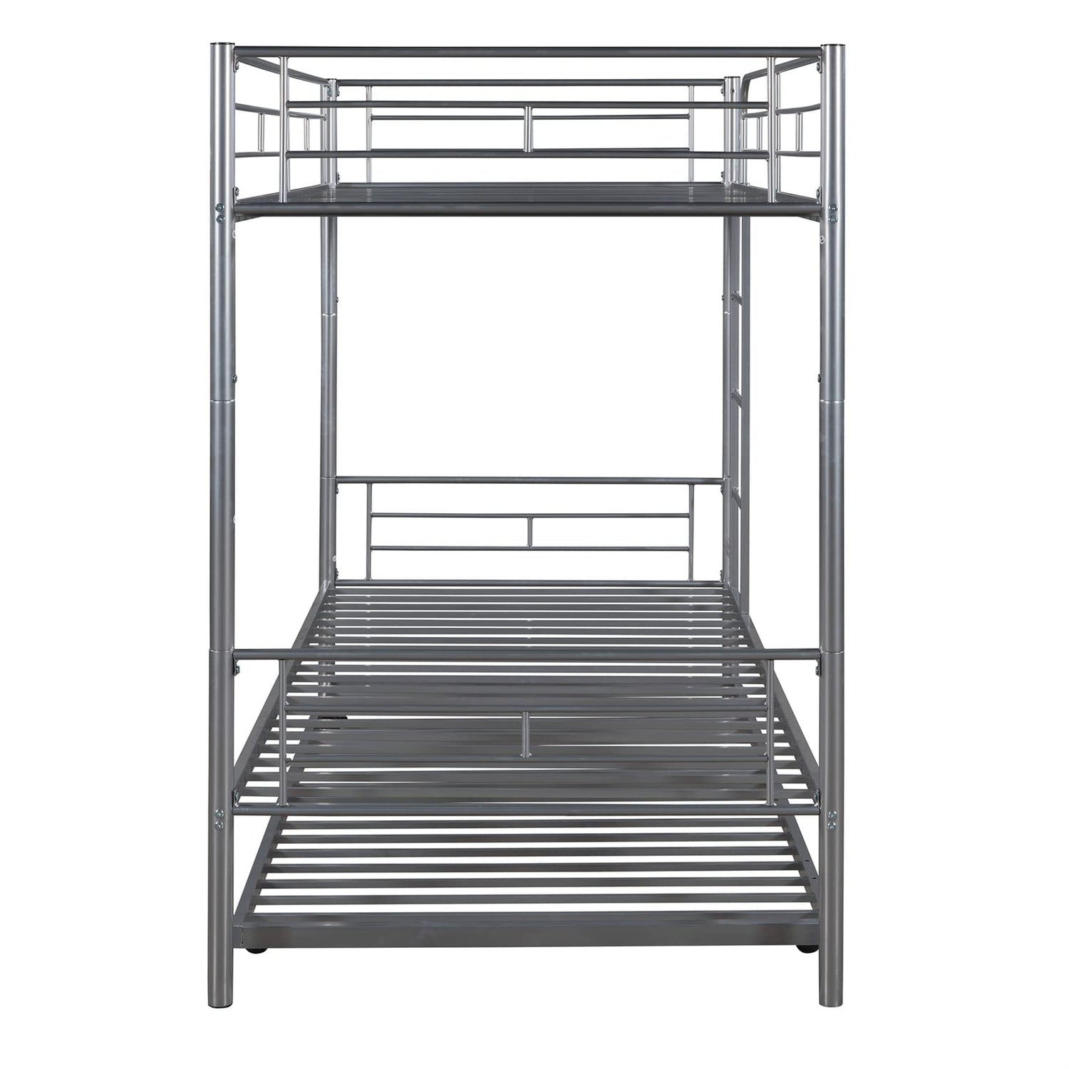 - [Contemporary Build With Solid Stability]: The simple yet metal twin-over-twin bunk bed is a modern classic, featuring a streamlined steel-crafted frame complimented by an eye-catching chrome finish. Manufactured with support you can rely on, the twin bunk bed is constructed with a sturdy quality tested steel frame that eliminates excess wobbling while adding solid stability and durability allowing users to sleep soundly.
