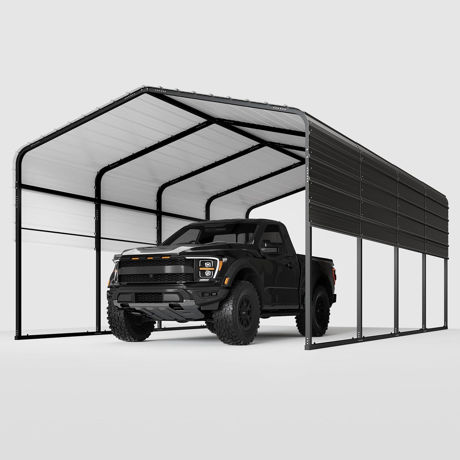- 【Multifunctional Design】The outdoor metal carport with a heavy-duty galvanized canopy and garage car shelter provides plenty of space for vehicles and trucks. It can act as a carport canopy and a shelter for outdoor activities such as parties, weddings, and trade shows. The gray finish gives your backyard an elegant and stylish appearance. Customize your outdoor life now.