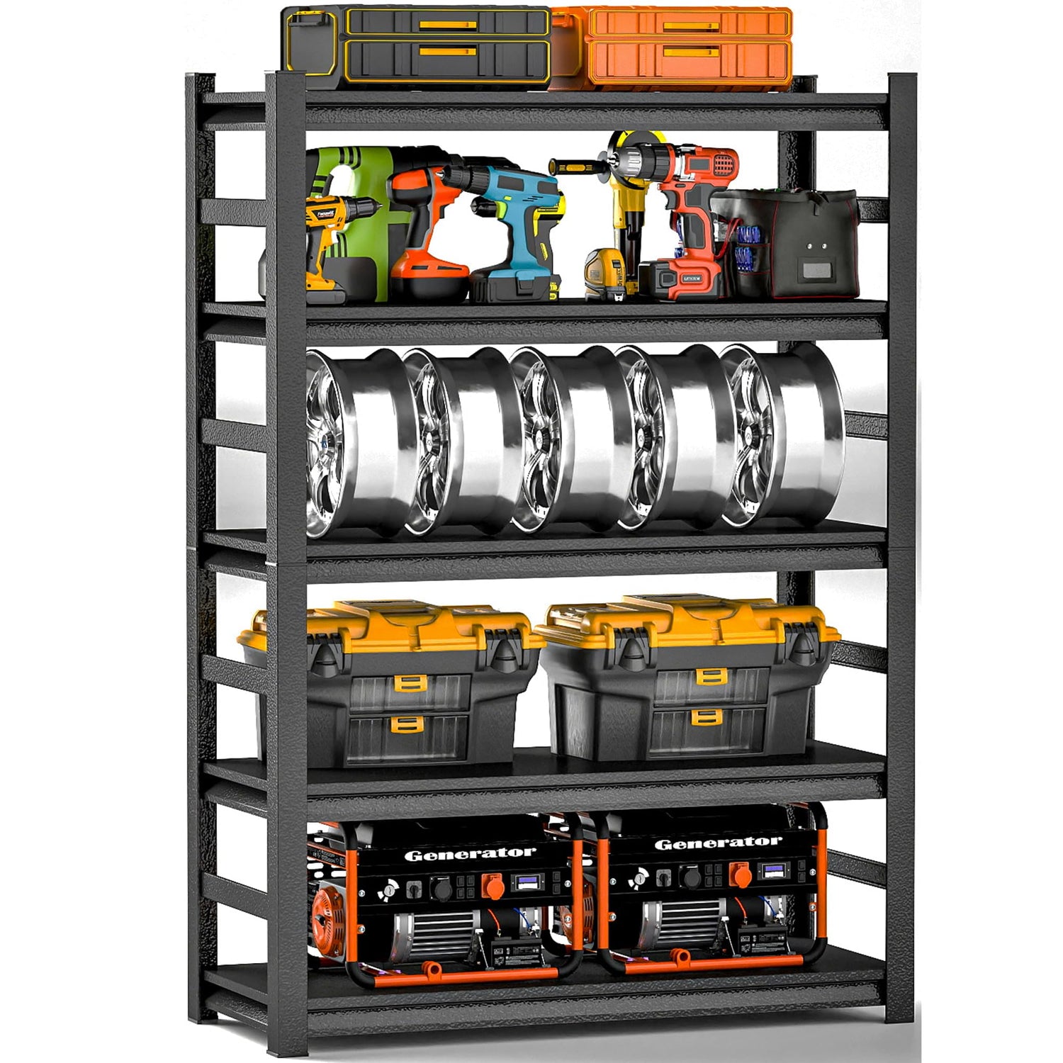 Metal Garage Shelving Unit,Heavy Duty 5-Tier Adjustable Storage Rack,Steel Shelving, 3000 lbs Capacity, Industrial Shelves for Heavy Tools and Equipment, Ideal for Garage (72"H×47.2"W×23.6"D)