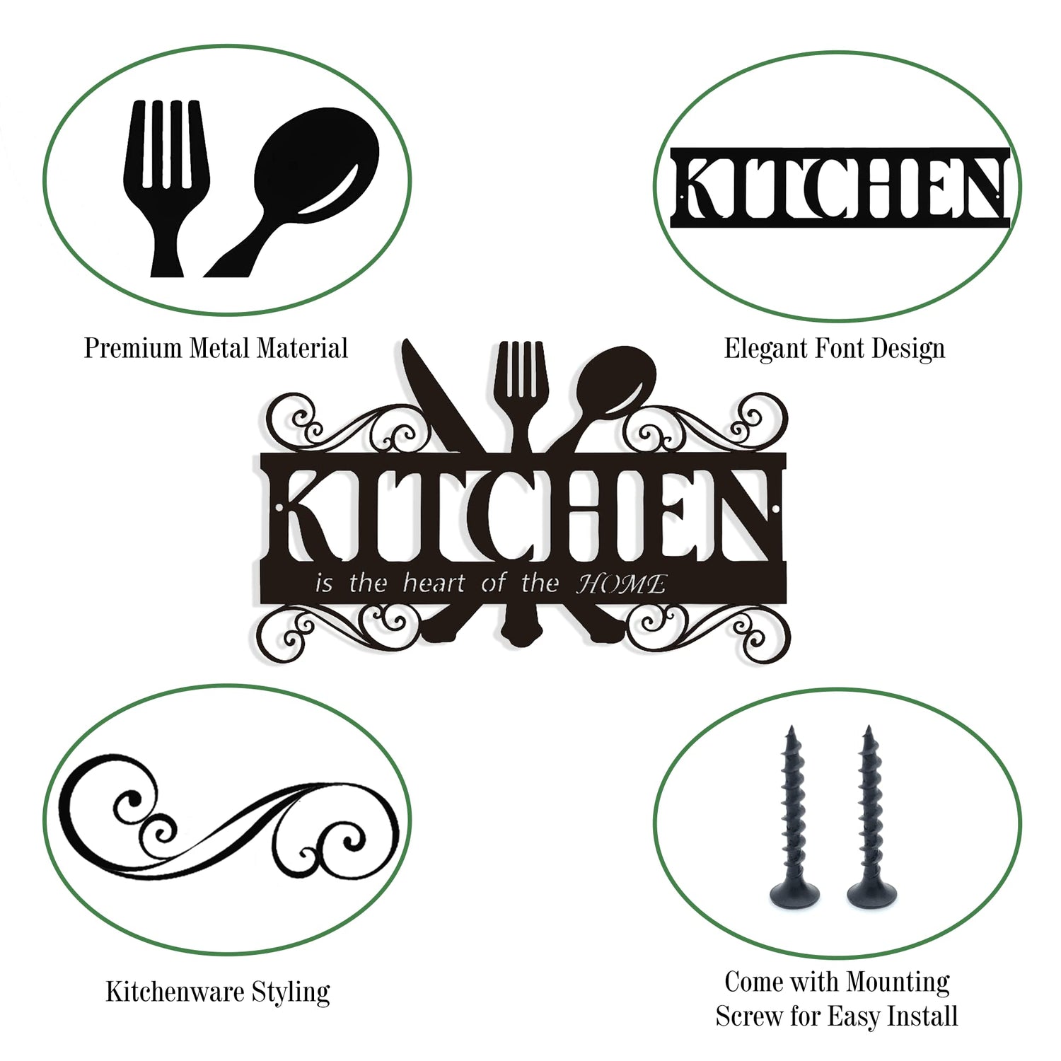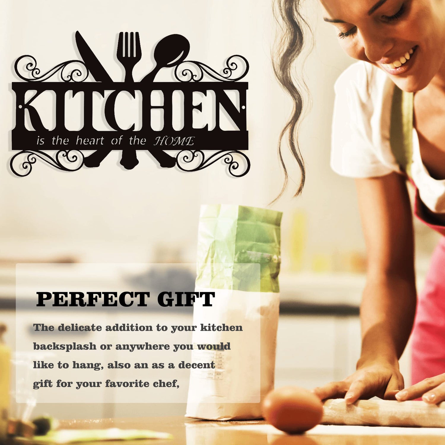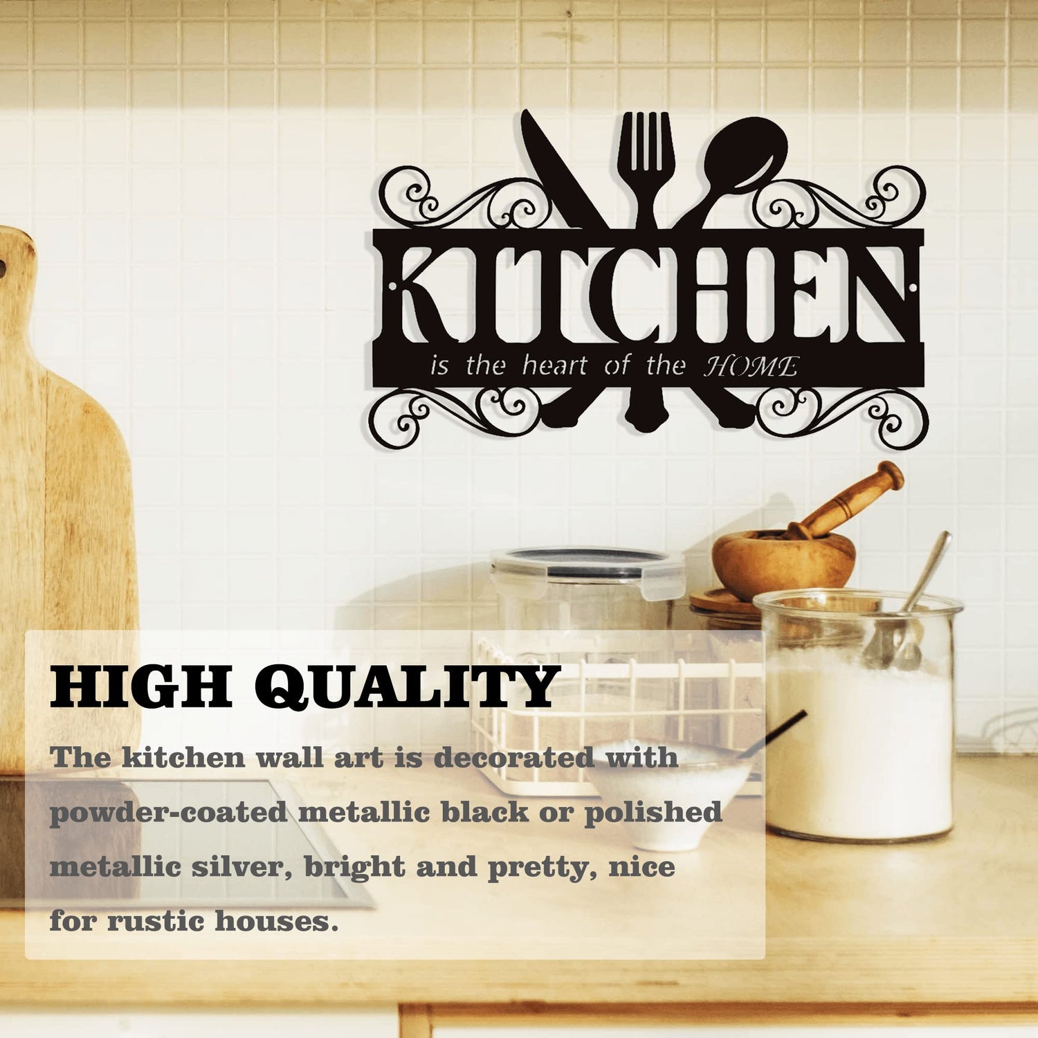 - 【KITCHEN WALL DECOR】 Kitchen wall sign adds a beautiful and lively touch to your farmhouse kitchen and dining room. Add an elegant touch to your kitchen decor with this metal kitchen sign. This kitchen decor is suitable for hanging on your kitchen wall. As described in the text above: "The kitchen is the heart of the home".