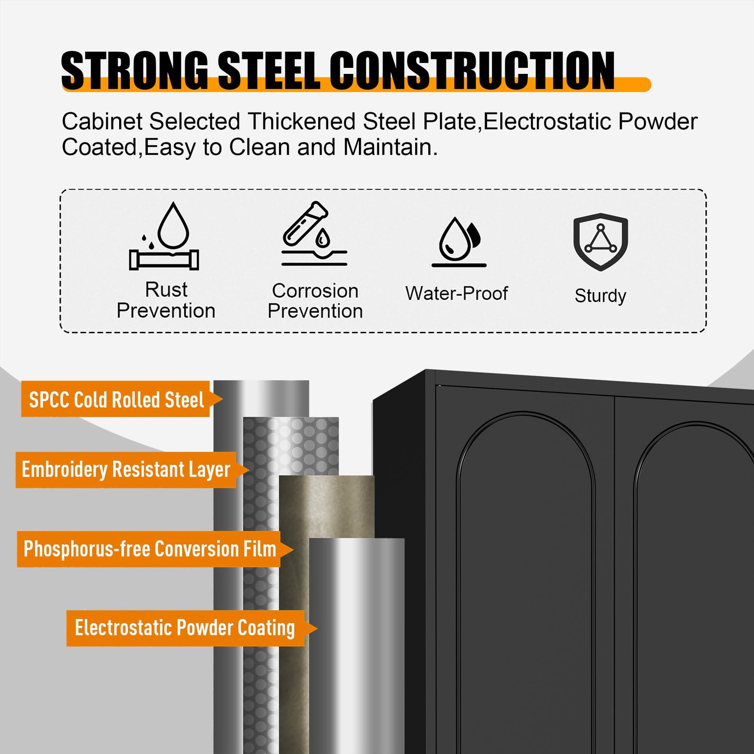 • Metal Cabinet: The tall kitchen cabinet is made of cold-rolled steel plate, with a powder coating process to prevent rusting. Sturdy, easy to clean surfaces. Black pantry cabinets come with an anti-tip feature that prevents the cabinets from tilting and protects your family