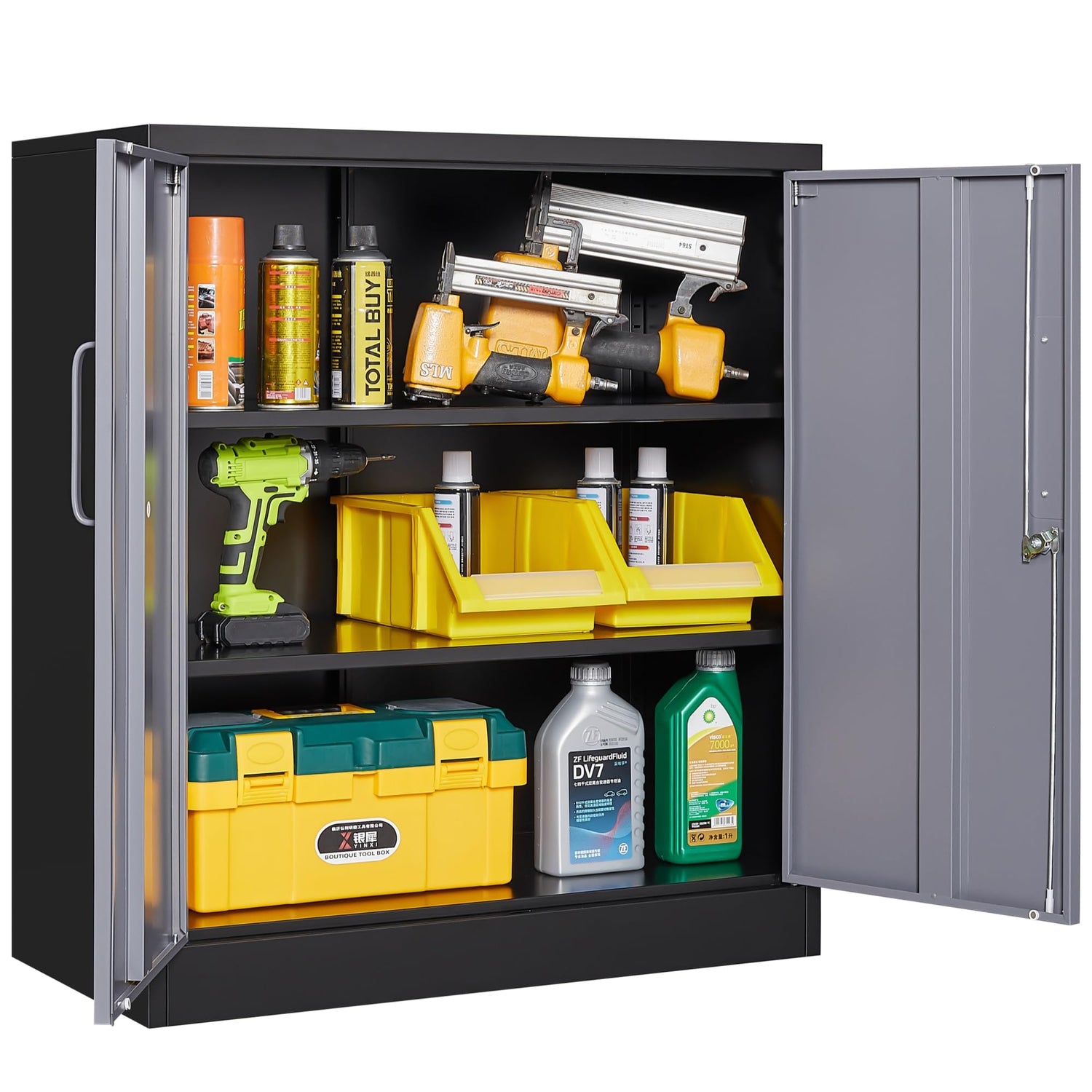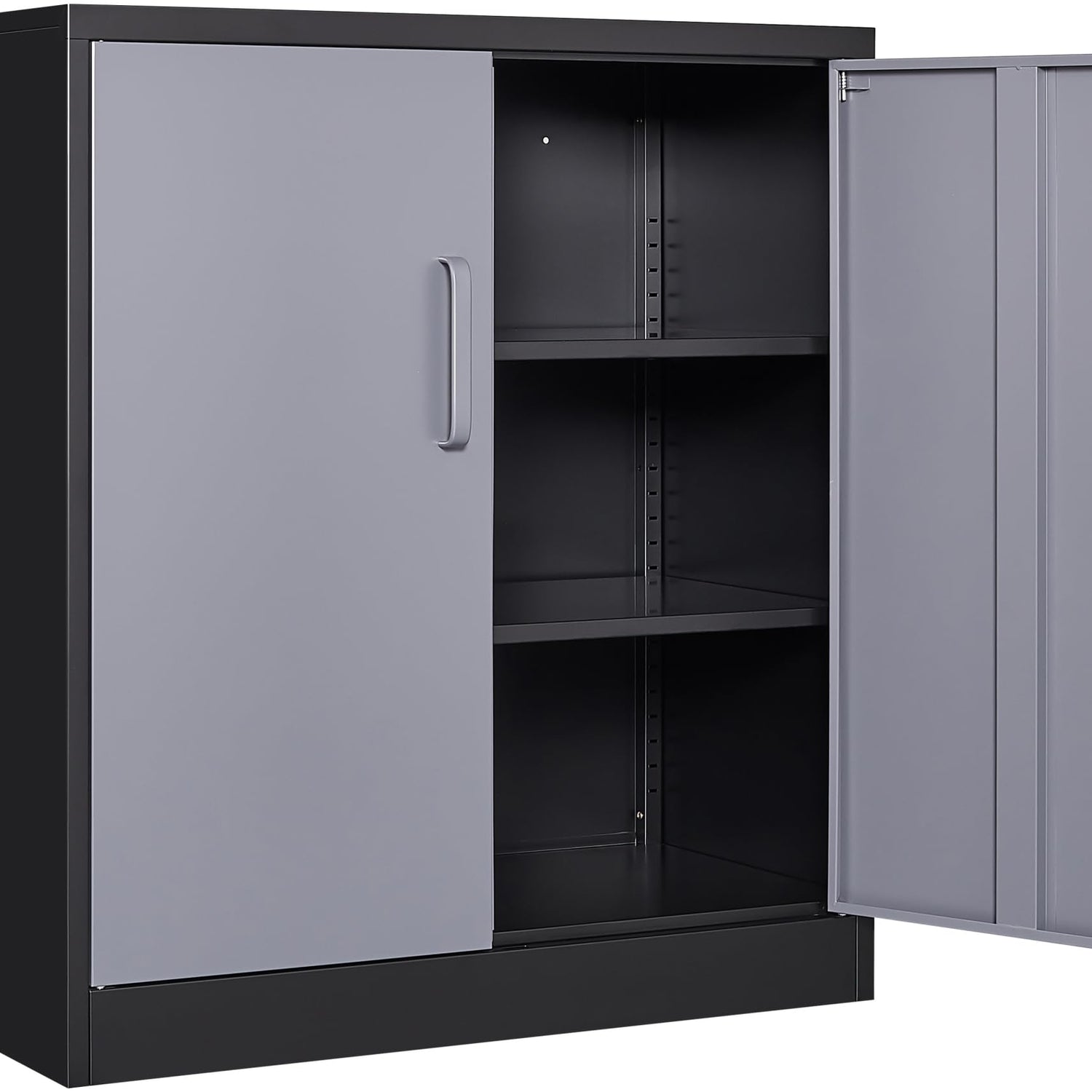 Metal Storage Cabinet with Doors and Shelves,Garage Storage Cabinet with Lock,Black Grey Metal Cabinet with Locking Doors,Steel Cabinet,Lockable Storage Cabinet for Home,Office,Garage Cabinets