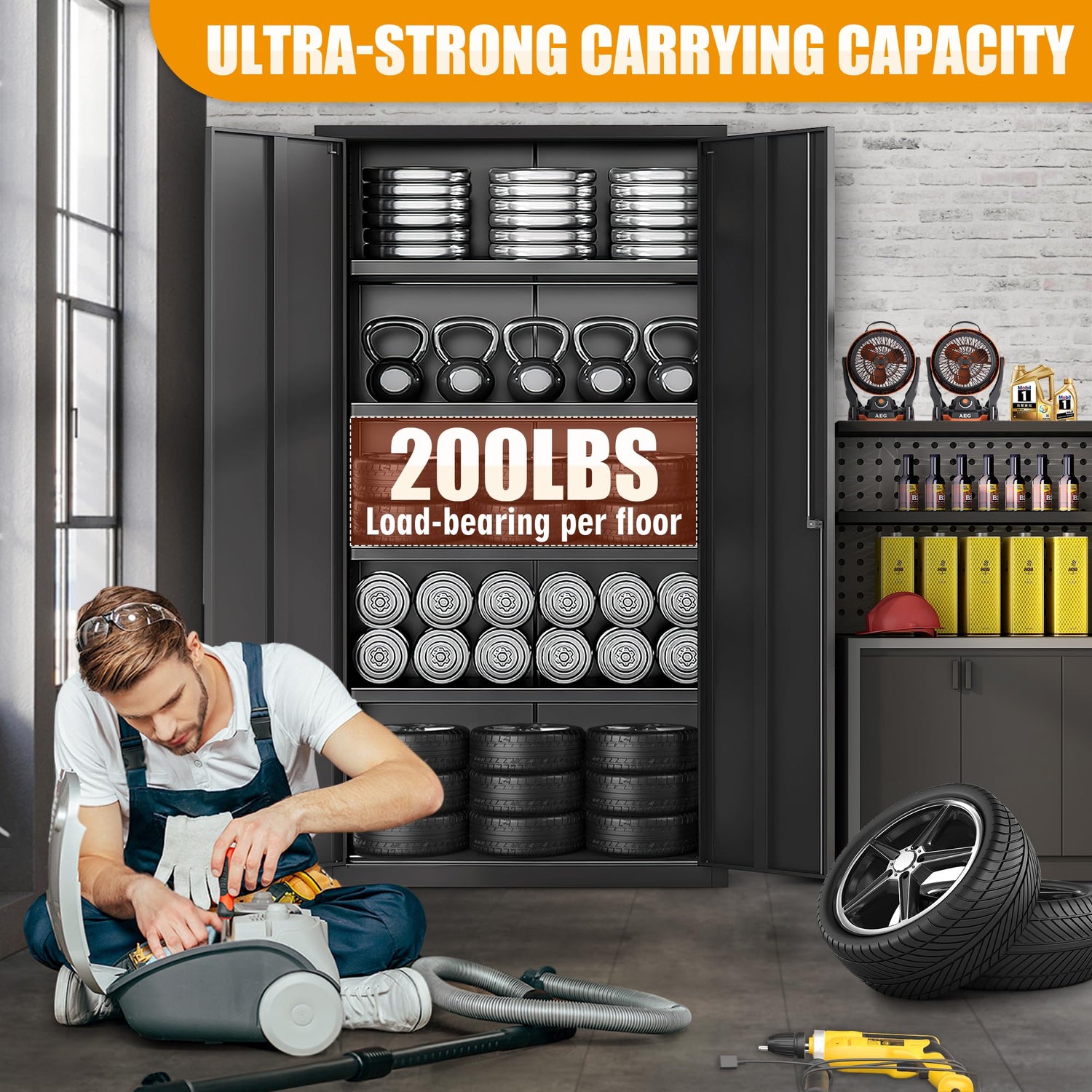 Metal Storage Cabinets, 71'' Tall Metal Garage Storage Cabinets with Lock,Sturdy Metal Cabinet Storage with 4 Adjustable Shelves and Doors, BLack Steel Cabinet for Garage,Offices,Basement,Storerooms
