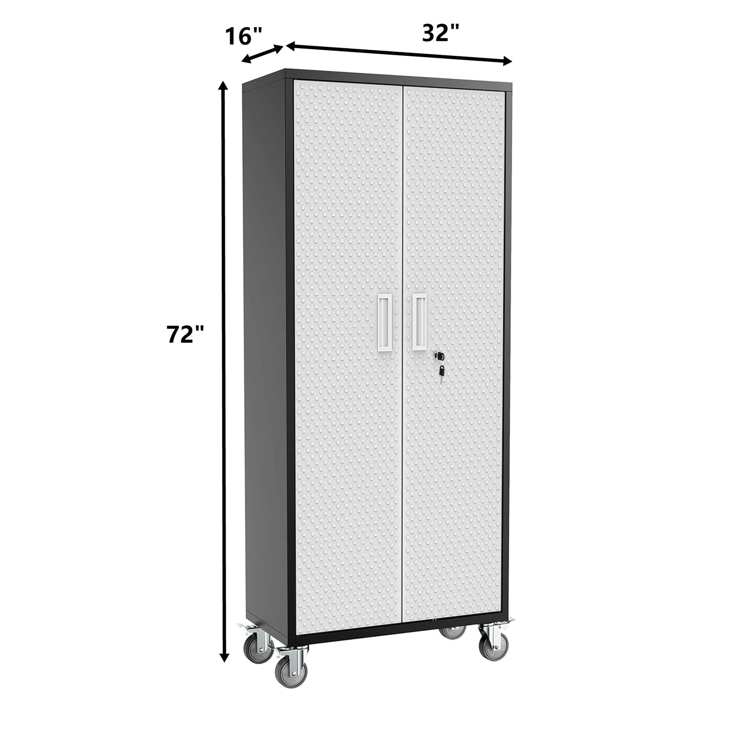 Metal Storage Cabinets Locker for Home Office, 72" Garage Storage Cabinet with Wheels, Lockable Door & Adjustable Shelves, Tall Large Steel Cabinet