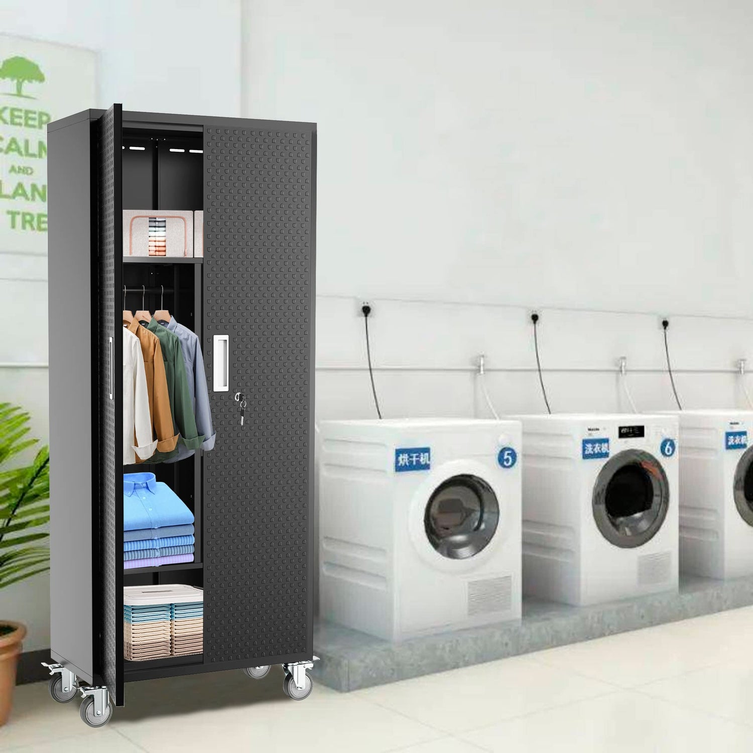 Metal Storage Cabinets Locker for Home Office, 72" Garage Storage Cabinet with Wheels, Lockable Doors and Shelves, Steel Wardrobe Cabinet with