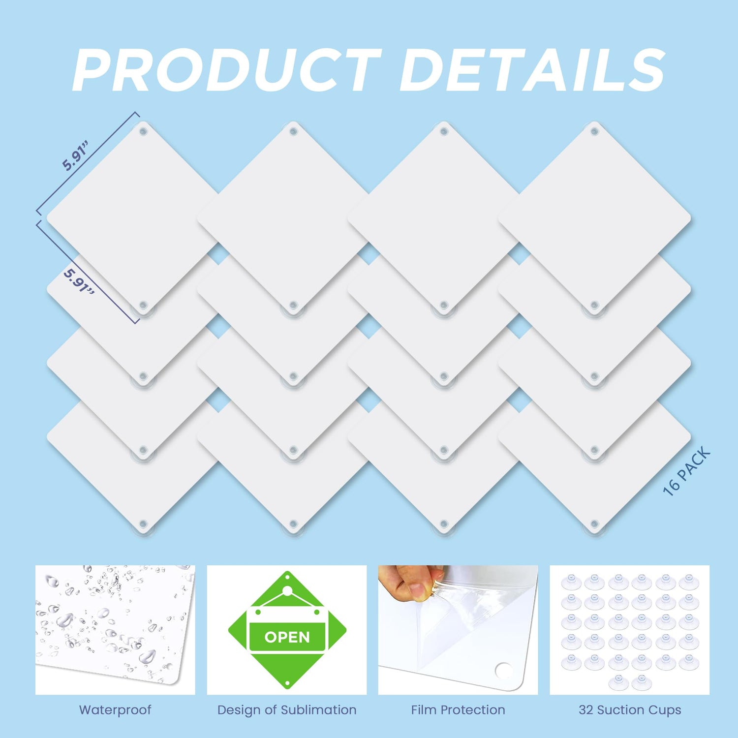 Metal Sublimation Signs, 16 Pack 6" x 6" Sublimation Blanks Suction Cup Car Window Sign, Custom Metal Signs for Hanging