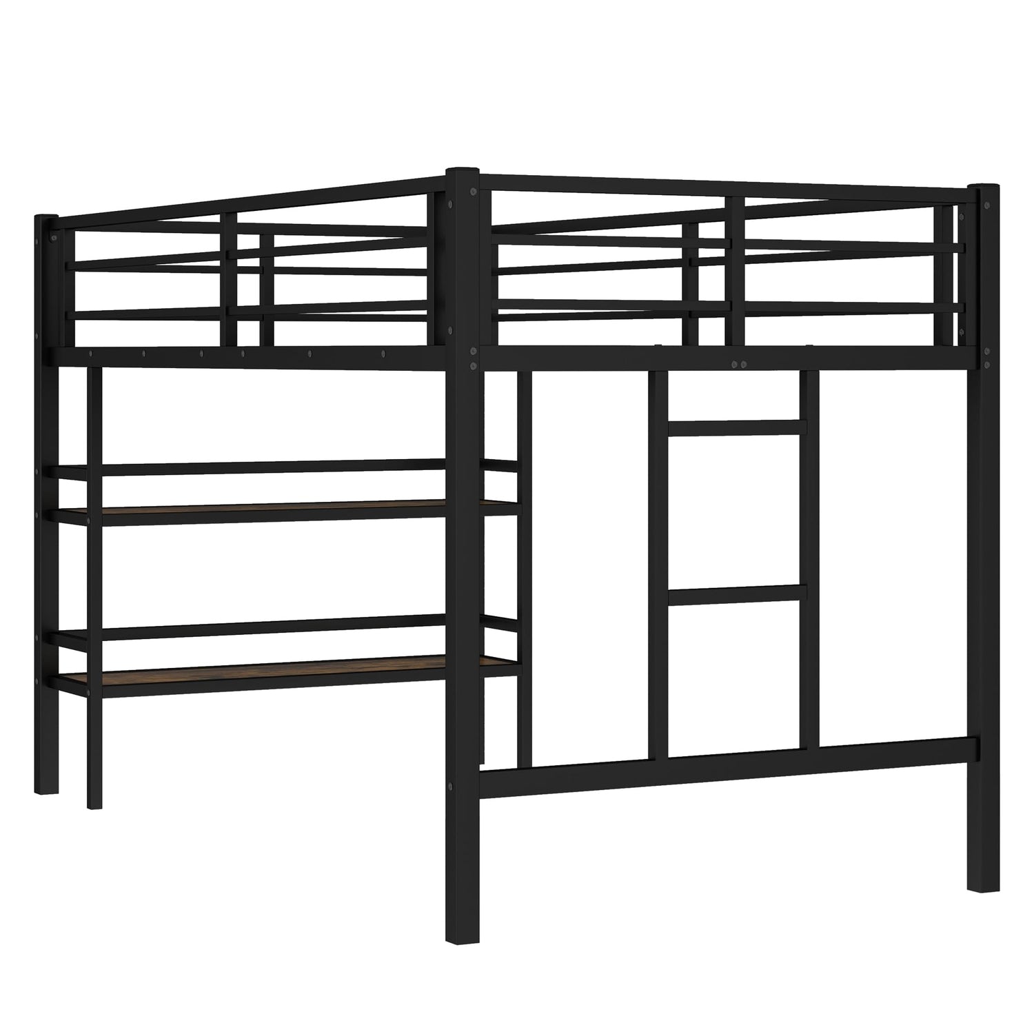Metal Twin Size Low Loft Bed with Storage Sheves for Kids,Heavy Duty Kids Loft Bed for Boys Girls Junior,Space Saving,Black