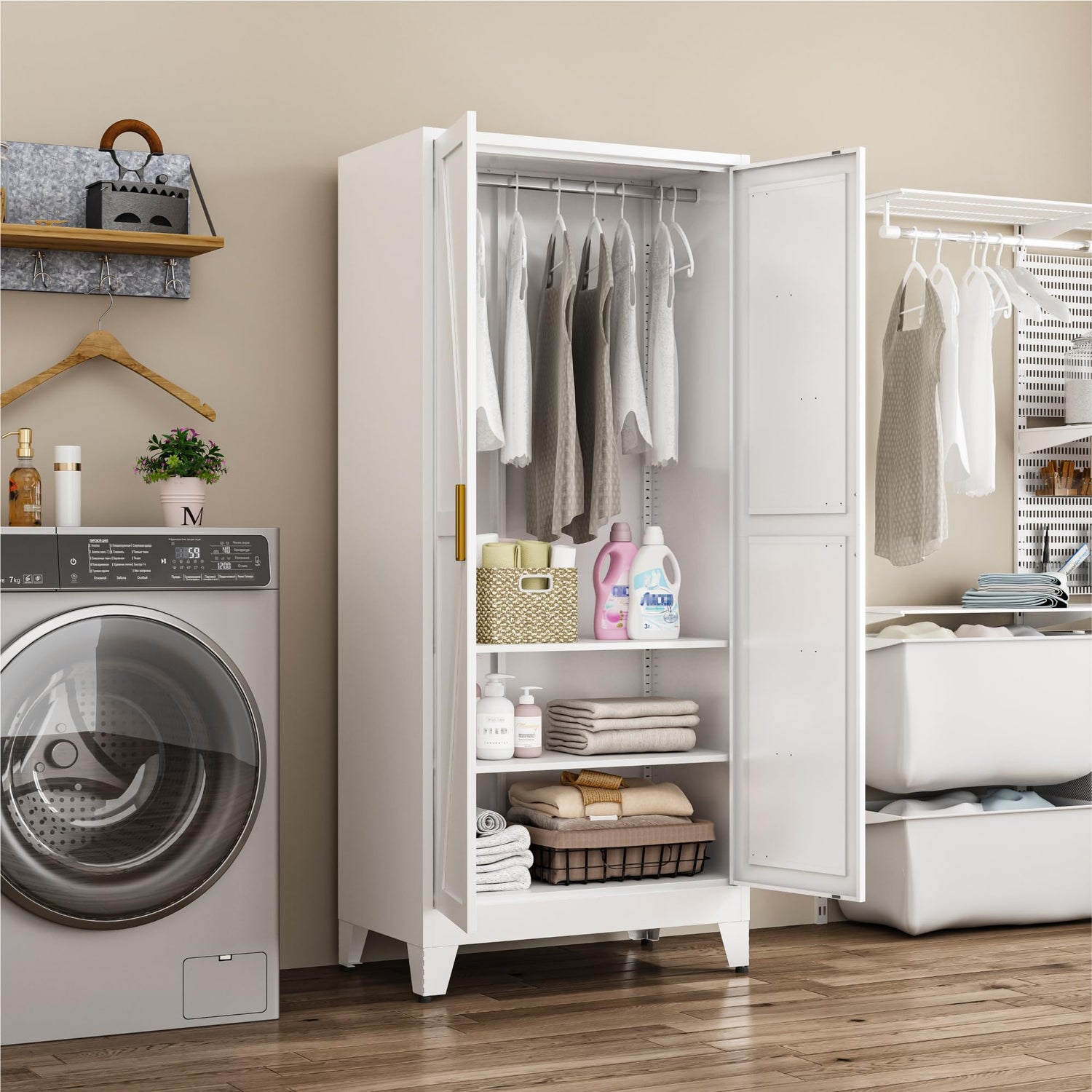 - 【Multi-purpose】This steel wardrobe is a must-have universal furniture for the home. You can put it in the bedroom, guest room, loft, living room, laundry room, bathroom or home office. Multi-purpose cabinets for storage seasonal clothing, cleaning supplies, sports equipment, etc.