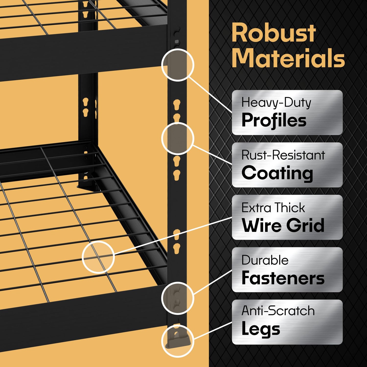 - ✅ PROPERLY STRONG AND DURABLE – Rely on this heavy-duty metal rack utility to securely hold your heaviest items. Built with reinforced steel and a rust-resistant coating, it ensures long-term durability. The extra-thick wire racks utility provide superior strength, while robust bolts and rivets enhance stability.