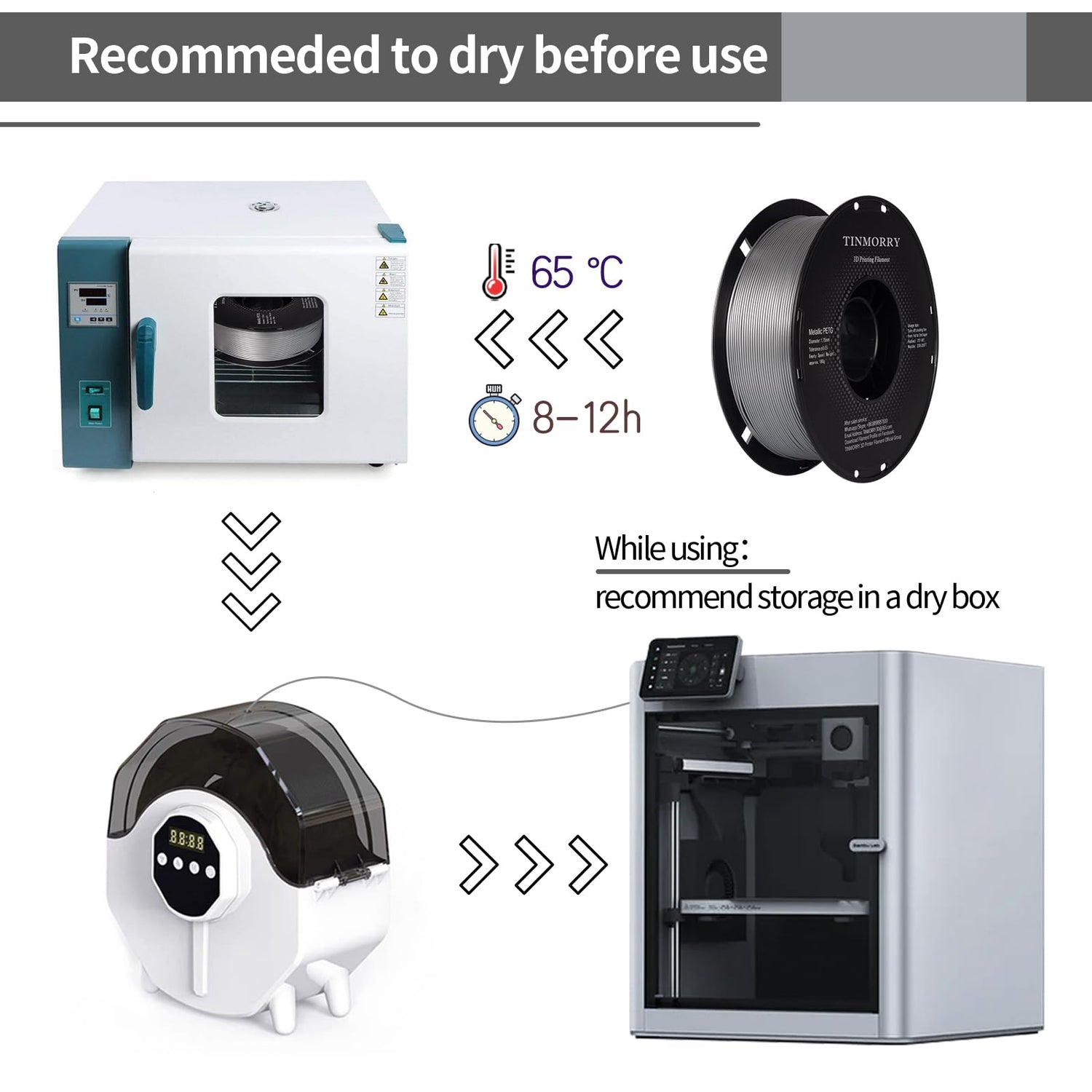 - 【High-Speed Printing】Support high-speed printing, the printing speed <300mm/s, 3-5 times faster than other brands of PETG filaments. Perfectly compatible with Bambu FDM 3D printers. If you have any questions while using TINMORRY filament, please contact us to get filament profile or download from GitHub.